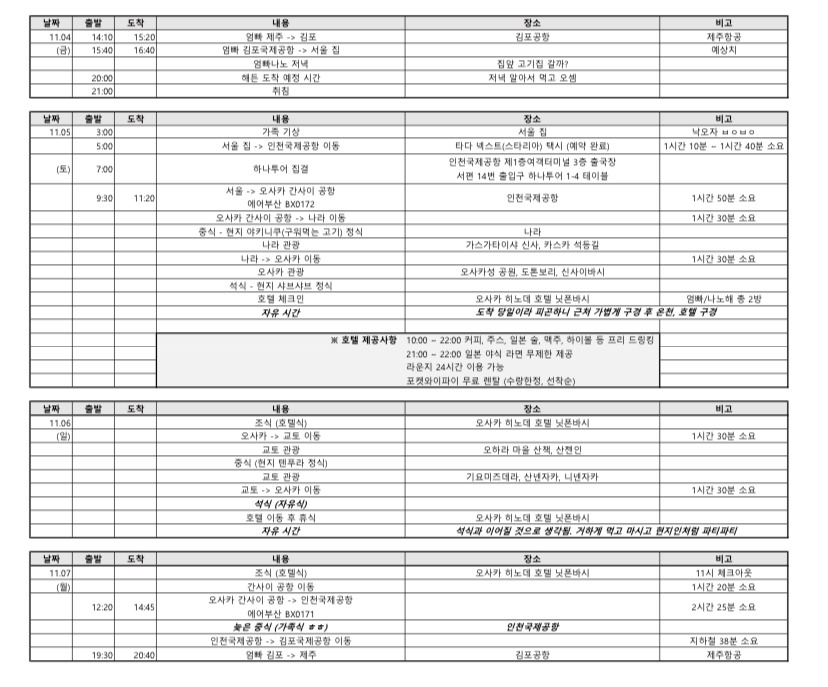 가족여행 일정표