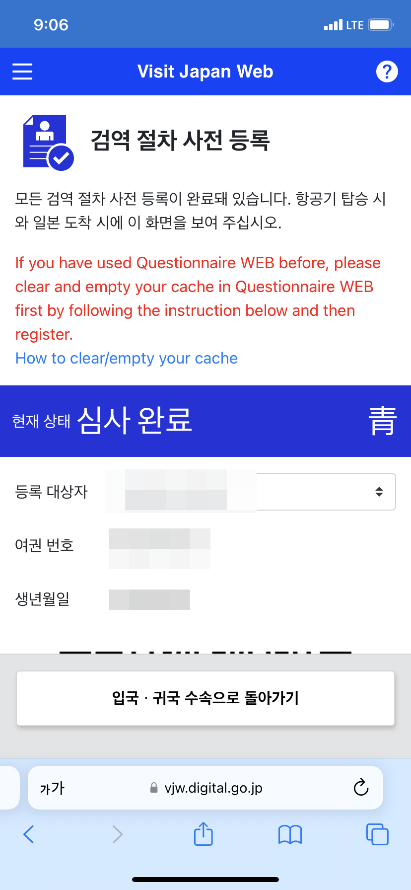 - visit japan Web에 접속해서 여권과 여행정보를 사전등록하고 심사를 받아야 했다.