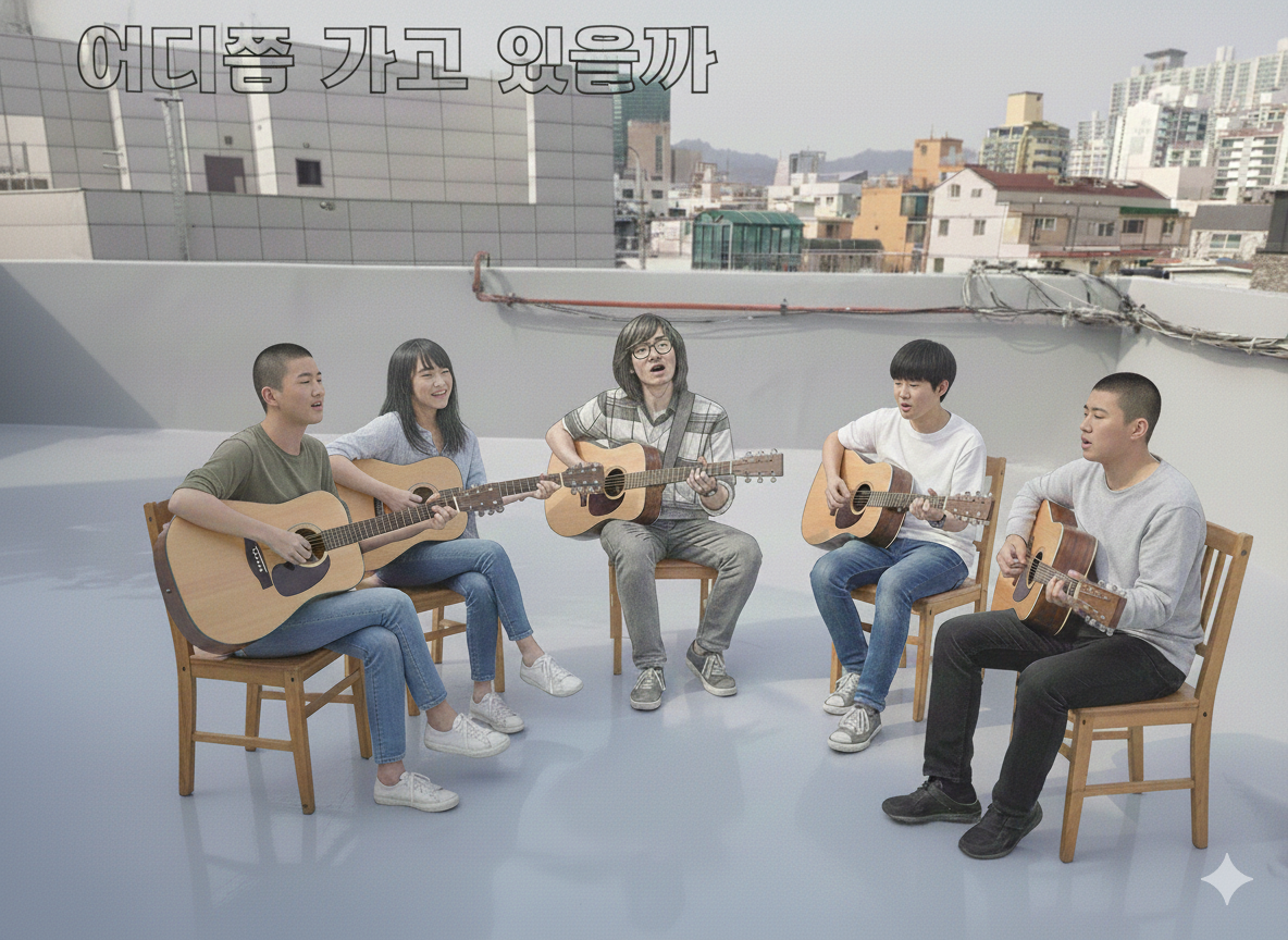 지금도 눈을 감으면 그날 그 자리 친구들의 목소리와 얼굴이 눈에 선하다. 허름한 옥상에 평상과 허름한 의자 몇 개가 있었다. 언제든지 열려있던 공개홀이다. 주위는 모두 단층집이었기에 옥상에 올라오면 주위가 온통 내 눈아래 있었다. 우리가 있는 곳이 제일 높은 무대가 된다. 탁 트인 공간 허공에 대고 서너 명이 기타 합주를 하면서 아무리 외쳐도 주위에서 뭐라고 하는 사람이 없었다. 그 시간이면 낮장사를 주로 하는 시장통은 문을 닫는다. 대부분 셔터문이 내려져 있고 몇몇 식당만이 불을 밝혀져 있는 시간이다.