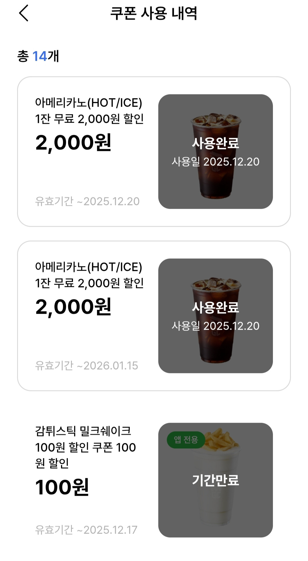 처음에는 그 쿠폰에 유효기간이 있는 줄 몰랐다. 어느 날 휴대전화 앱을 보니 쿠폰이 있었다. 이걸로 커피를 마셔야겠다 하고 눌렀는데 유효기간 경과된 쿠폰이었다. 아쉬움이 잔뜩, 길을 가다 돈을 잃어버린 그런 기분이었다. 쿠폰은 사용기간이라는 게 그리 긴 것은 아니기에 아차 하면 놓칠 수 있음을 그때 알았다.