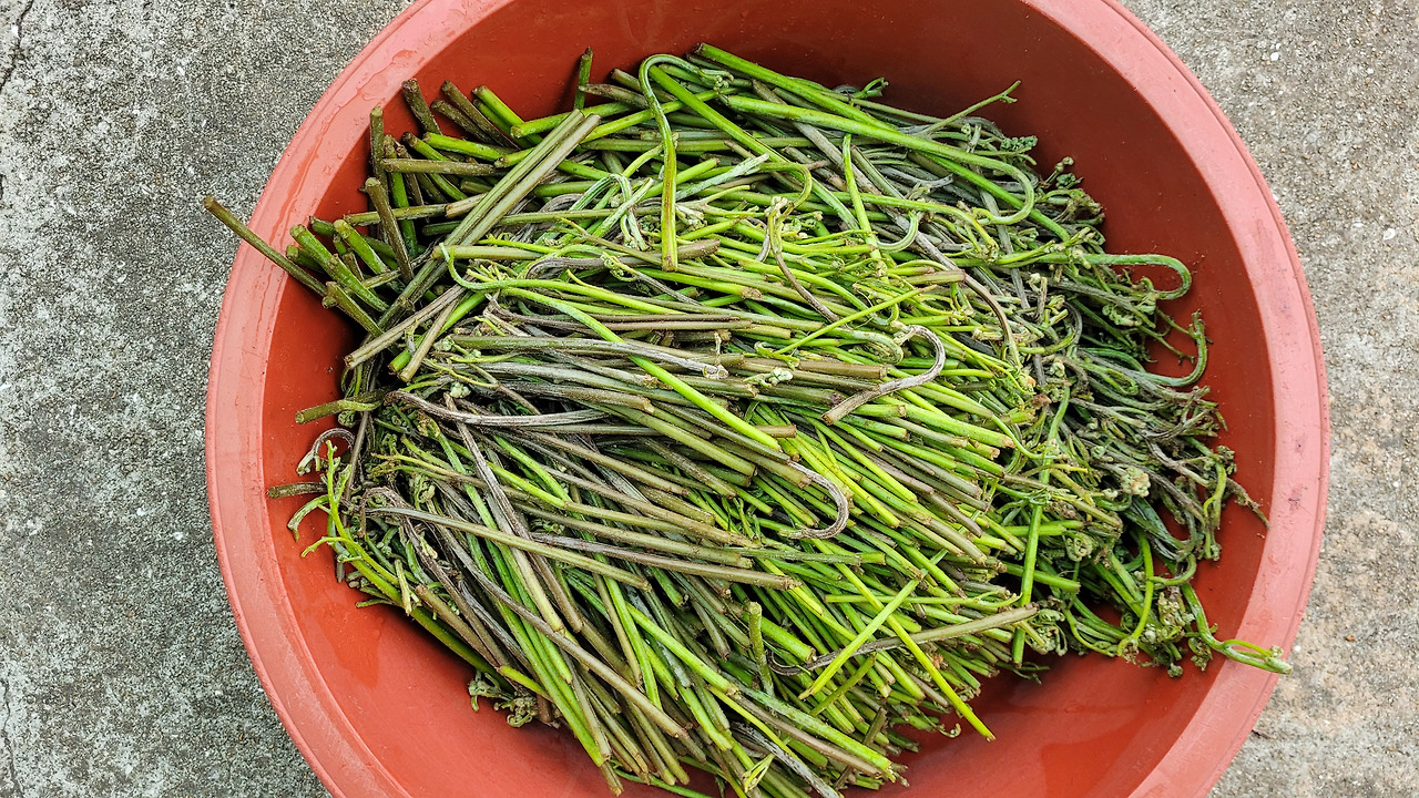 꺾은 고사리를 전부 모아보니 꽤 양이 됐다. 섭섭하지 않을 정도였다. 오늘 목표량은 간신히 채운 듯하다.
