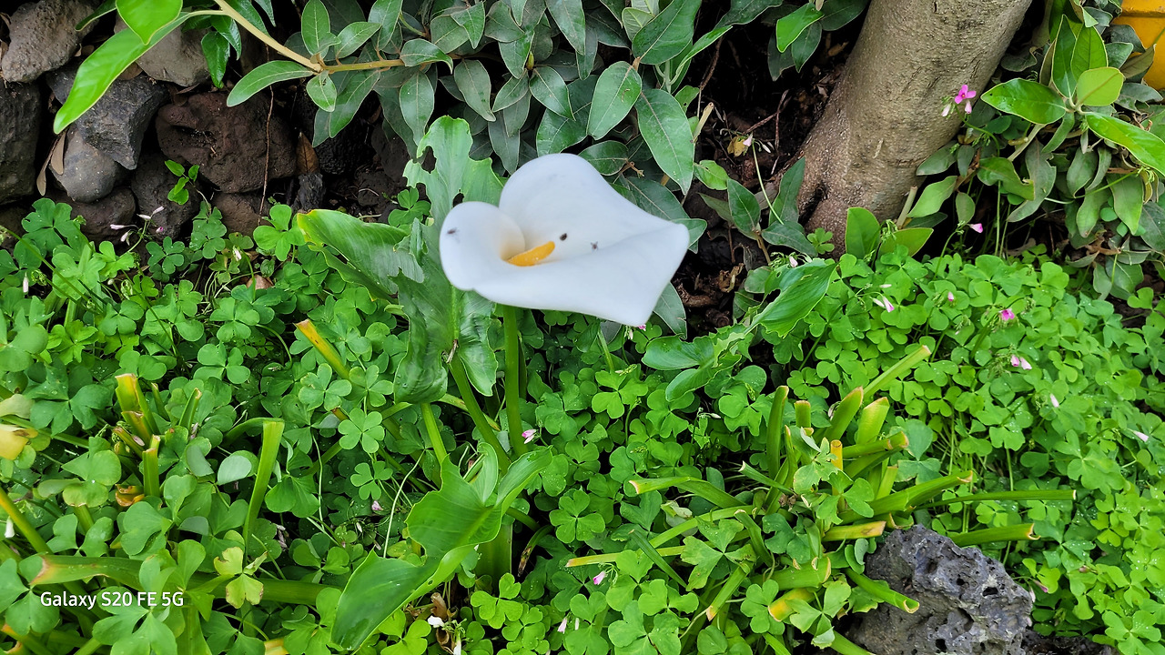 아내의 재촉에 화답하듯 비를 한껏 받아먹은 칸나가 오늘은 집 모퉁이에서 활짝 얼굴을 들이밀고 있다.