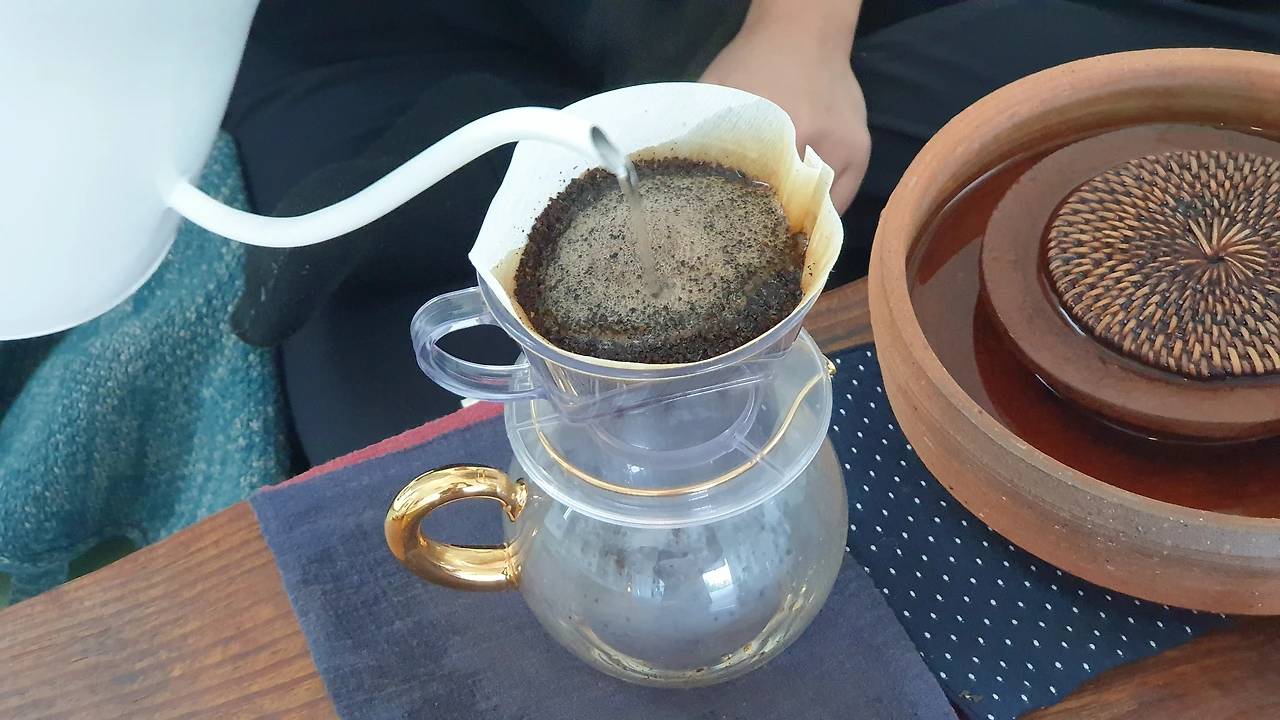 선생님은 이야기 도중 카페 '성지'에서 사 온 원두를 꺼내 핸드드립을 해주셨다. 미동 없이 한 손으로 물줄기를 돌리는 폼이 보통 솜씨가 아니다. 알고 보니 커피를 좋아해서 따로 배우기도 하고 커피 성지를 찾아 카페 투어도 엄청 많이 다니셨단다. 그러다 정착한 곳이 카페 '성지'. 결국 성지를 찾은 것이다.