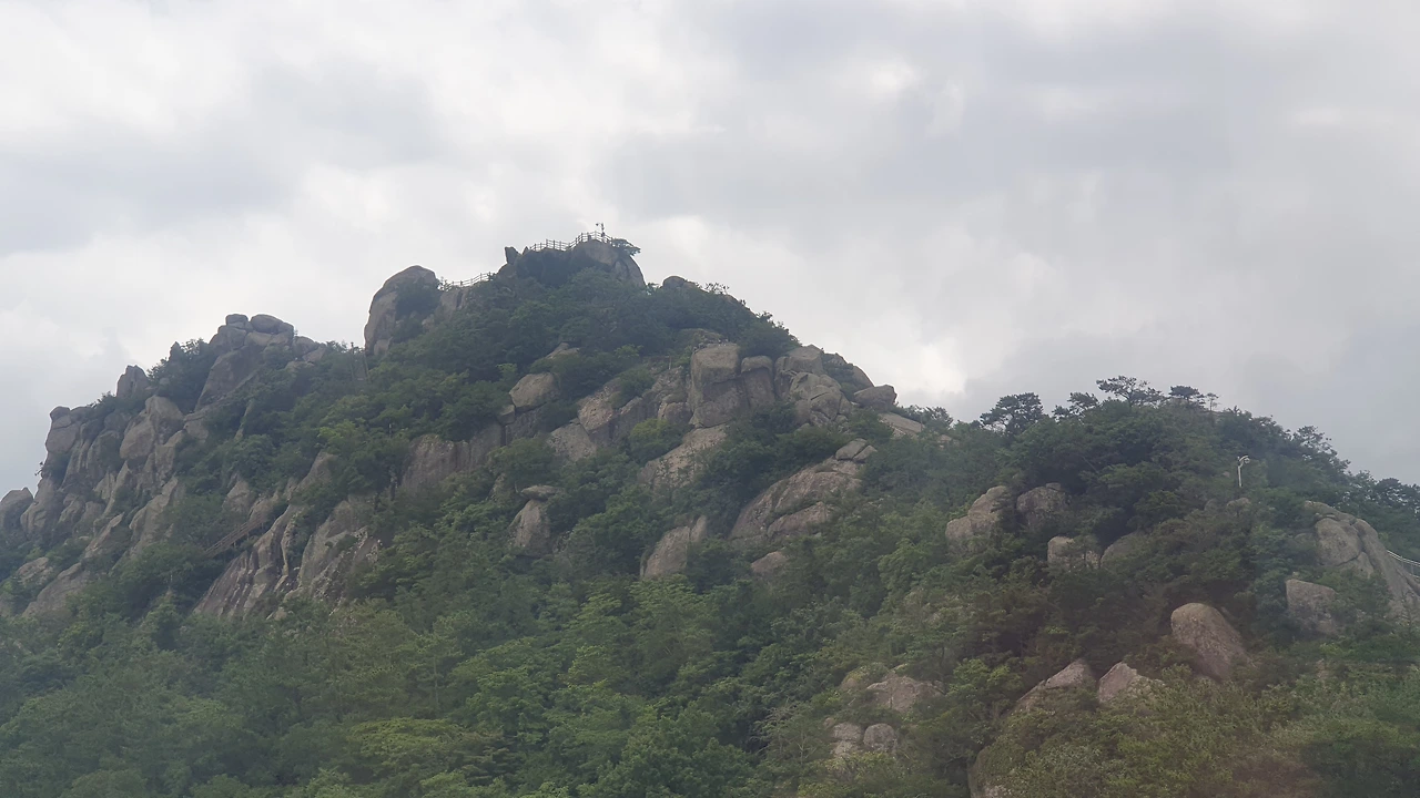 "자 저쪽에 들어오는 걸로 타시면 됩니다." 잔뜩 졸아 있는 니콜과 쑴을 데리고 의자에 앉자마자 케이블카는 속도감 있게 줄을 타고 오른다. 발 밑을 스칠 듯 지나가는 소나무와 기암괴석들, 저 멀리 보이는 목포 시가지.