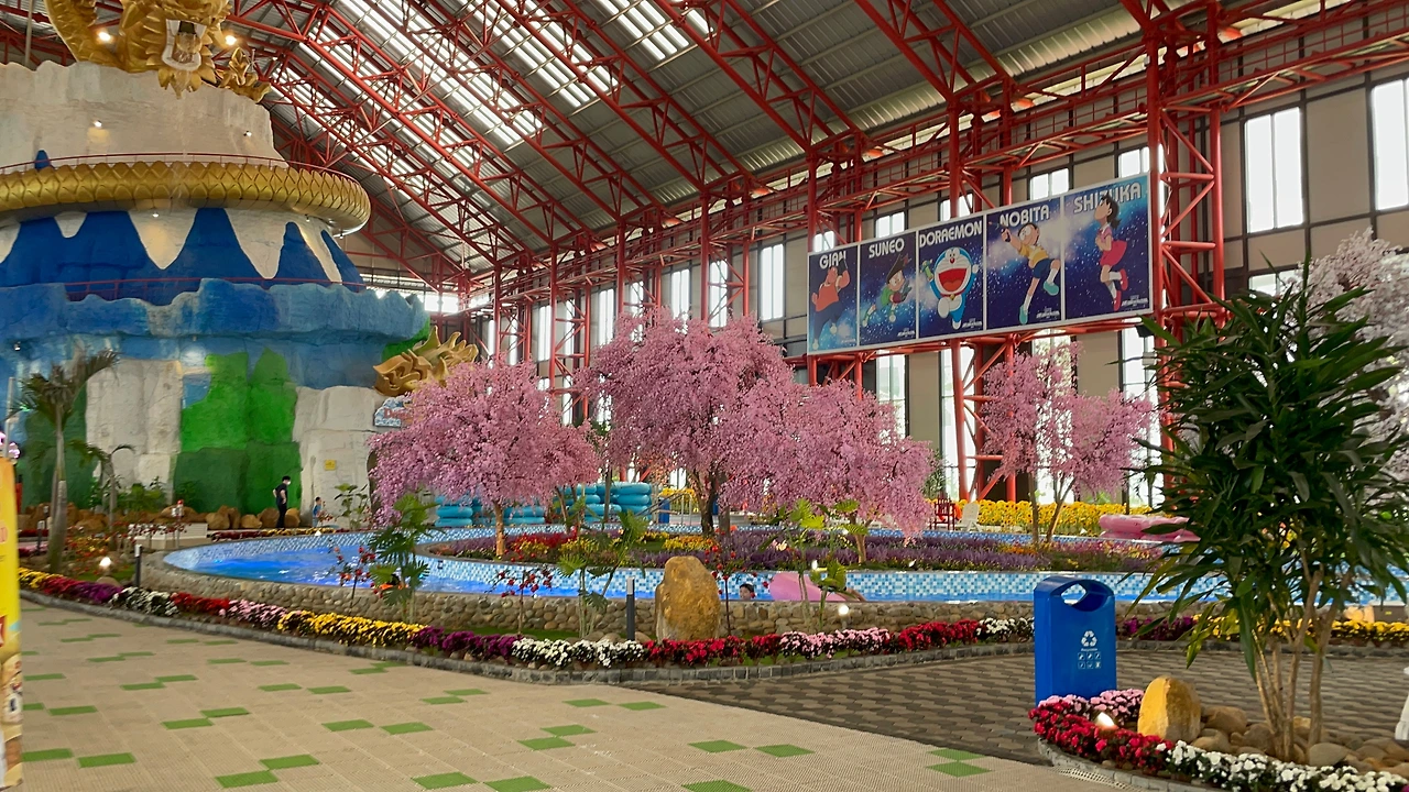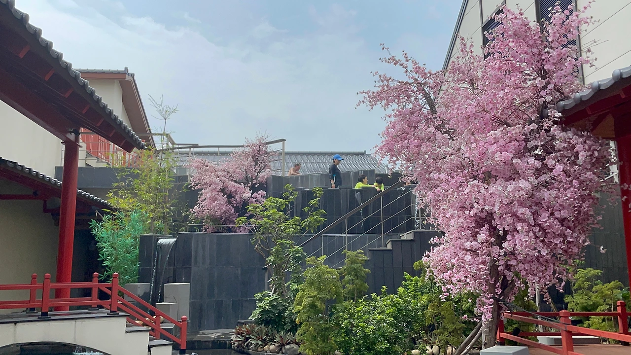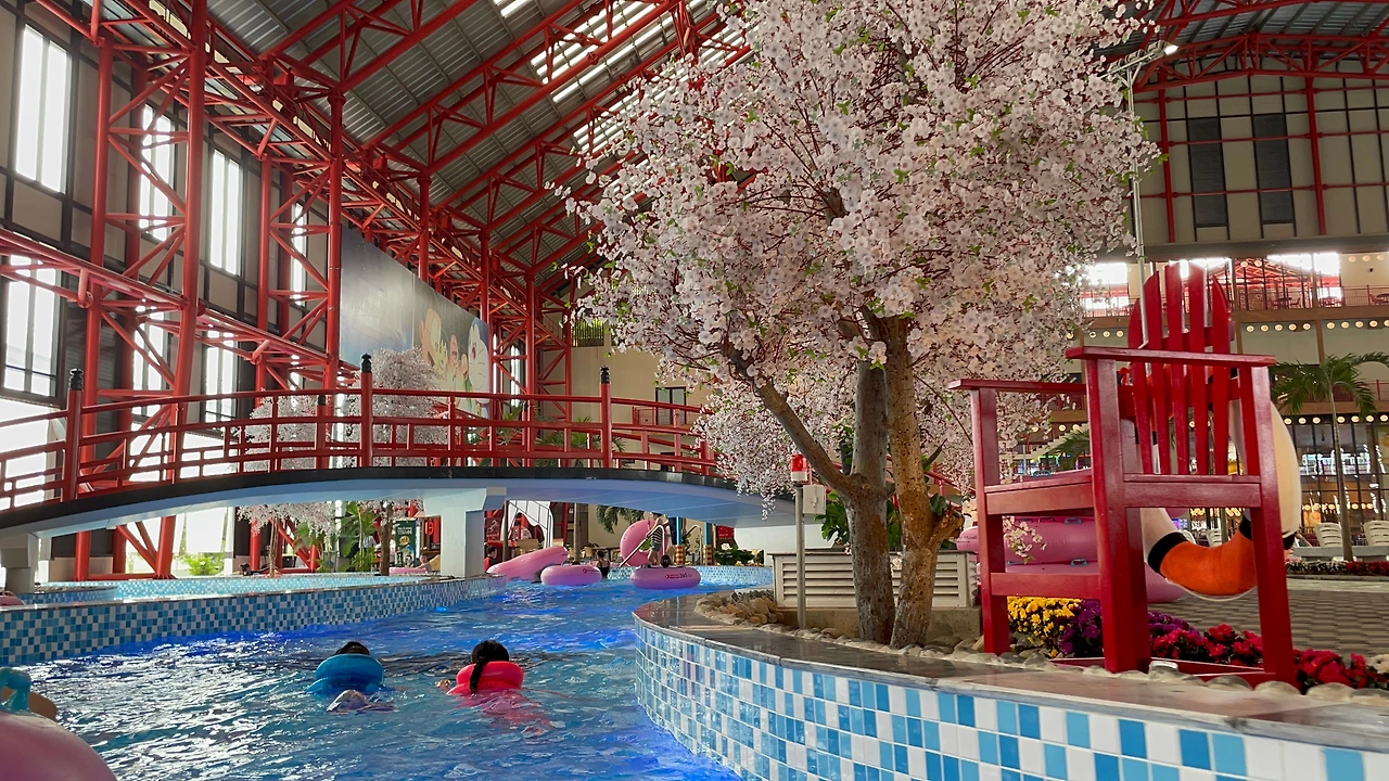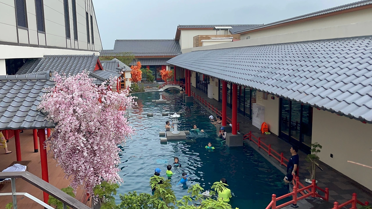 호텔의 전체적인 느낌에 맞게 일본의 느낌이 강하게 난다. 전체적인 색감이나, 나무에서도 일본의 느낌을 받을 수 있다. 화단에는 조화도 심어져 있지만, 실제 나무들도 싶어져 있다. 파도풀장에서는 이벤트도 진행하고 있으니 꼭 한번 참여해 보길 바란다. 공에 상품이름을 적어 놓은 공을 뿌리면 주우서 가져가면 된다. 다만, 다들 상품에 눈이 멀어 아이들이 뒷전이 될 수 있으니 조심해야 한다.