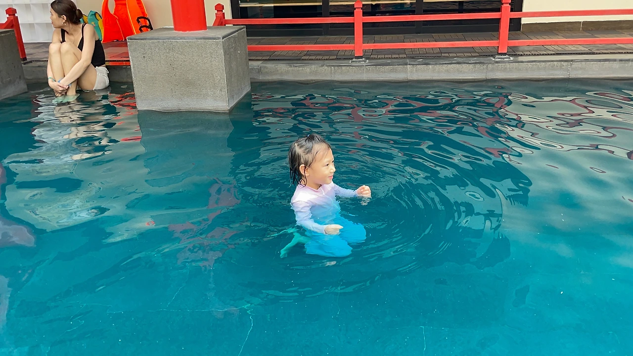 유아풀장이 가장 따뜻했고, 아이들이 놀기에도 좋았다. 다만, 어린이용 튜브가 따로 없기 때문에 챙겨가는 것을 추천한다.