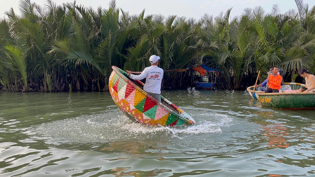 처음 탑승 할 때 배가 흔들릴 수 있지만, 절대 전복되지는 않으니 걱정하지 말아라. 바구니배에서 춤추고 노래하는 장면을 본다면 괜한 걱정이었다는 것을 알게 된다. 바구니배에 탑승하면, 베트남 전통 모자 농라(논라/발음차이다.)가 있어 써볼 수 있다