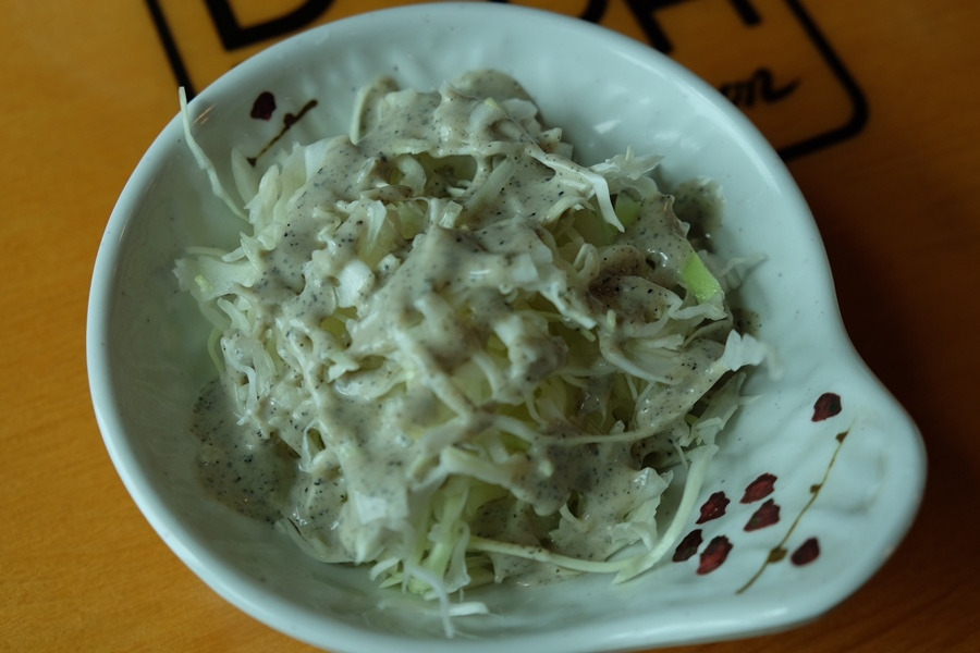 말해 무엇 하나. 참깨 소스가 뿌려진 아주 간단한 샐러드다. 소스가 일반 참깨 소스는 아닌 듯 하다. 분명 먹어본 맛인데, 정확히 뭐가 첨가된 건지 잘 모르겠다. 혹시나 이 글을 보고 가는 사람이 있다면, 먹어보고 알려줬으면 좋겠다.