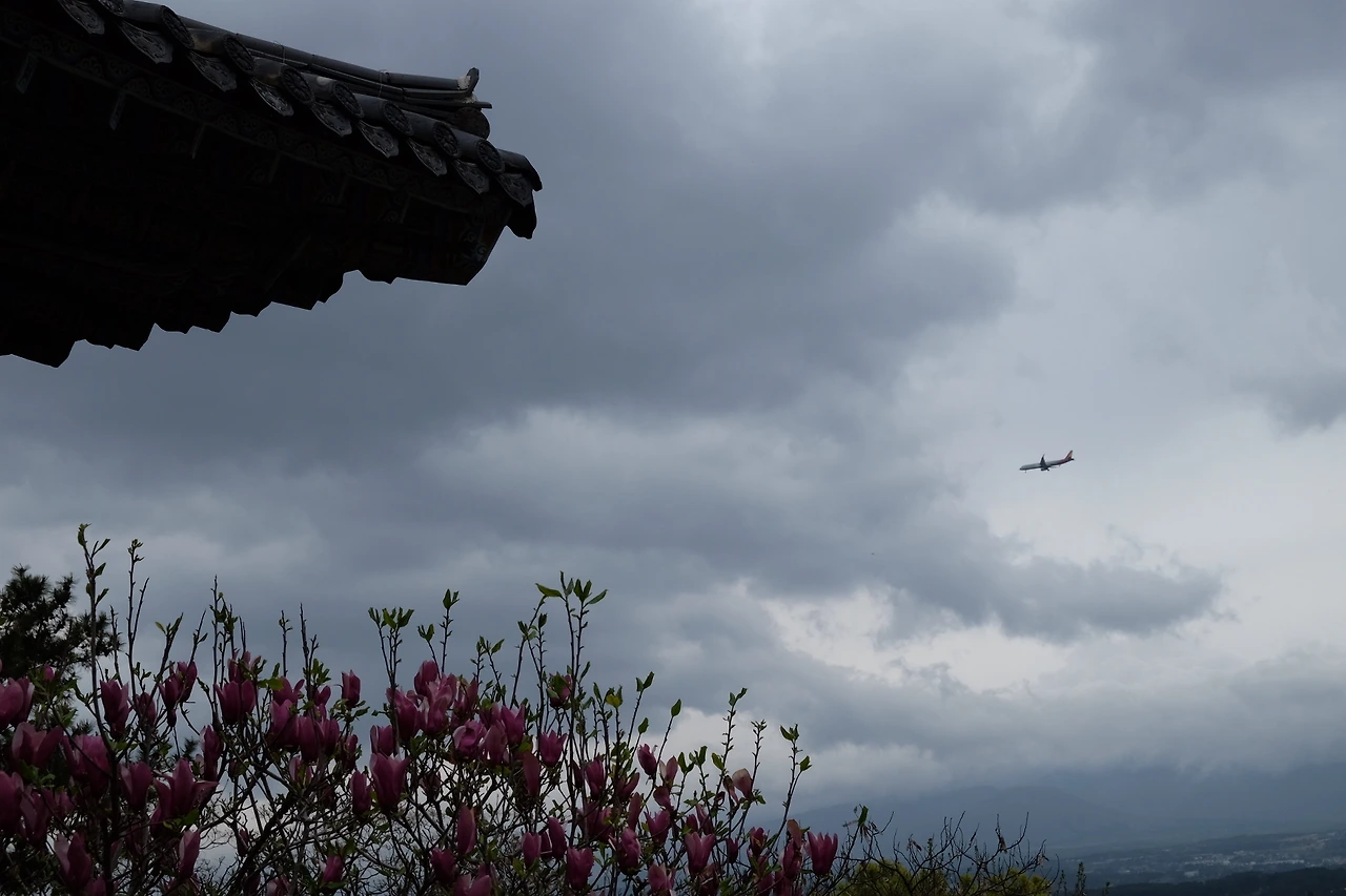 수산봉은 공항에서 나름 가까운 오름이다. 그래서인지 오름을 오르다 보면 착륙하려는 비행기가 자주 보인다.