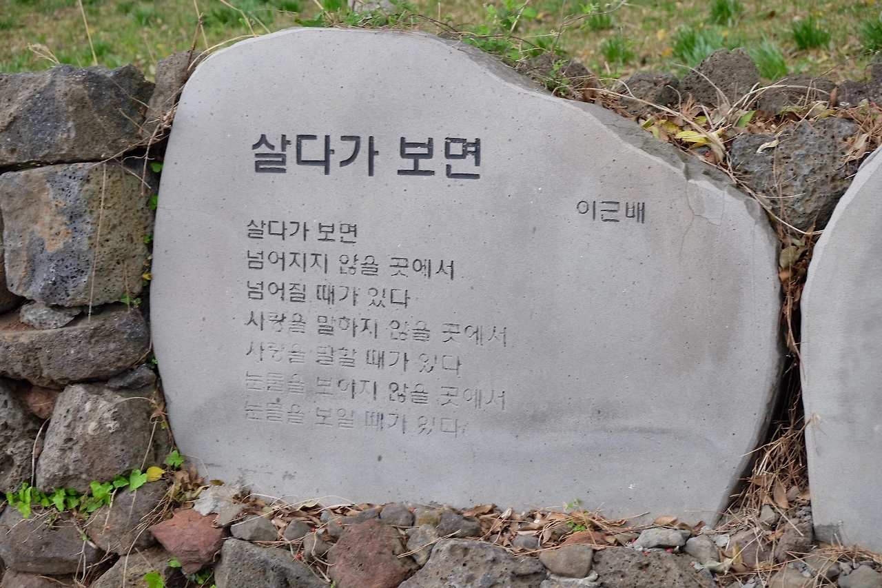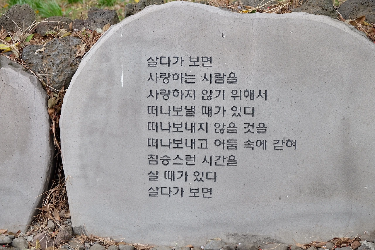 오름을 오르다 보면 돌에 시가 써져 있는 게 상당히 많다. 그중에서도 아내가 읽어보 괜찮다고 한 시 하나를 가져왔다.