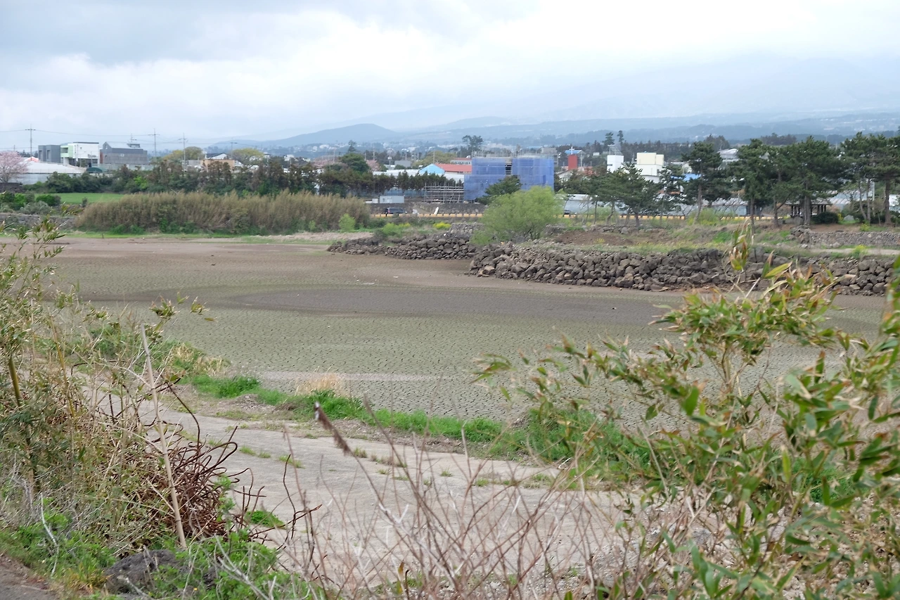 다른 사진들처럼 아래에 저수지가 있었다면 확실히 더 좋았을 듯싶다. 비가 많이 오면 다 저수지가 차는 걸까. 약 두 달 전에 올린 포스팅을 보면 물이 있던데, 설명해 줄 만한 사람이 없다.