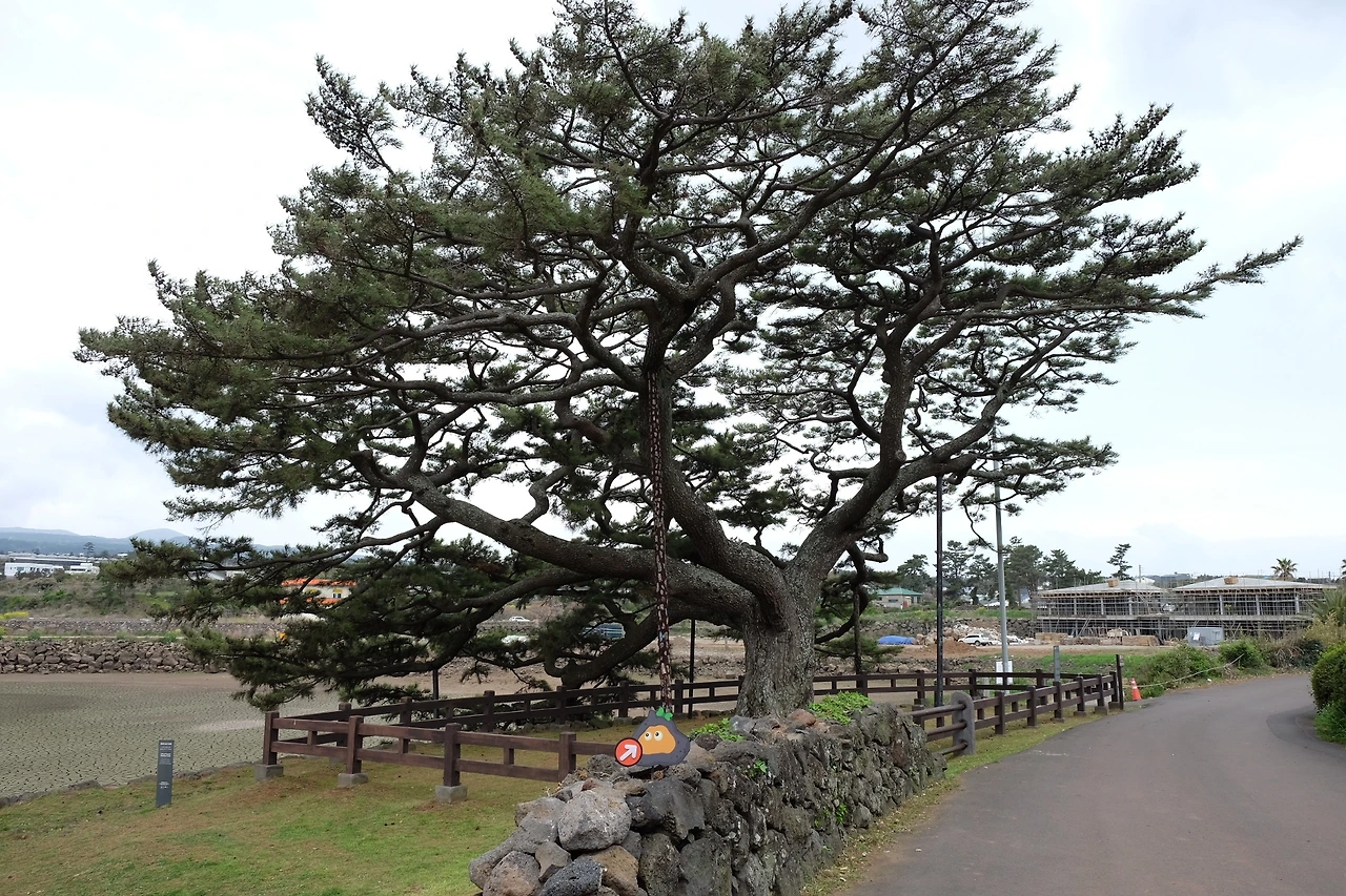 그네에서 오른쪽 옆길로 내려와 올레길 표시를 따라가다 보면 일반 도로가 나온다. 거기서 고개만 살짝 옆으로 돌리면 곰솔나무가 보인다.