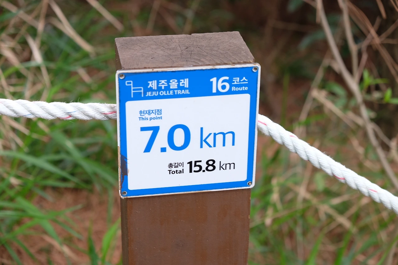 이 오름은 올레16길을 품고 있다. 가만 보니 대부분의 오름들이 올레길을 품고 있는 듯하다. 그만큼 오름들이 멋진 길이 많다고 생각하면 될 듯하다. 다른 이름은 물메오름이라고도 한다. 정상에 물이 고인다고 해서 붙여진 이름이다. 관련 블로그나 정보를 찾아보면, 주변에 저수지가 있고, 정상에 작은 우물이 있다고 하는데, 이제는 없다. 있었는데 없어졌다. 그래서 명소인 그네에서 바라보는 풍경도 예전 같지는 않을 것이다. 그럼에도 나는 수산봉을 걸으면서 꽤 마음에 들었는데, 지금까지 오른 4개의 오름중에서 유일하게 길이 자연의 숲길이란 느낌이 강하게 들었다.