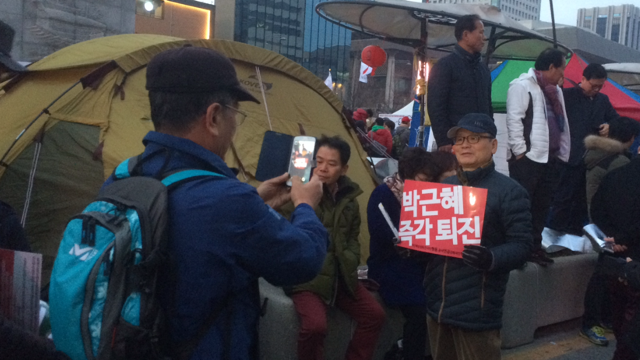70대 초반의 어르신 두 명이 ‘박근혜 즉각퇴진” 카드를 들고 서로 기념사진을 찍어 주고 있었다. 세대적 한계가 깨어지고 있었다.