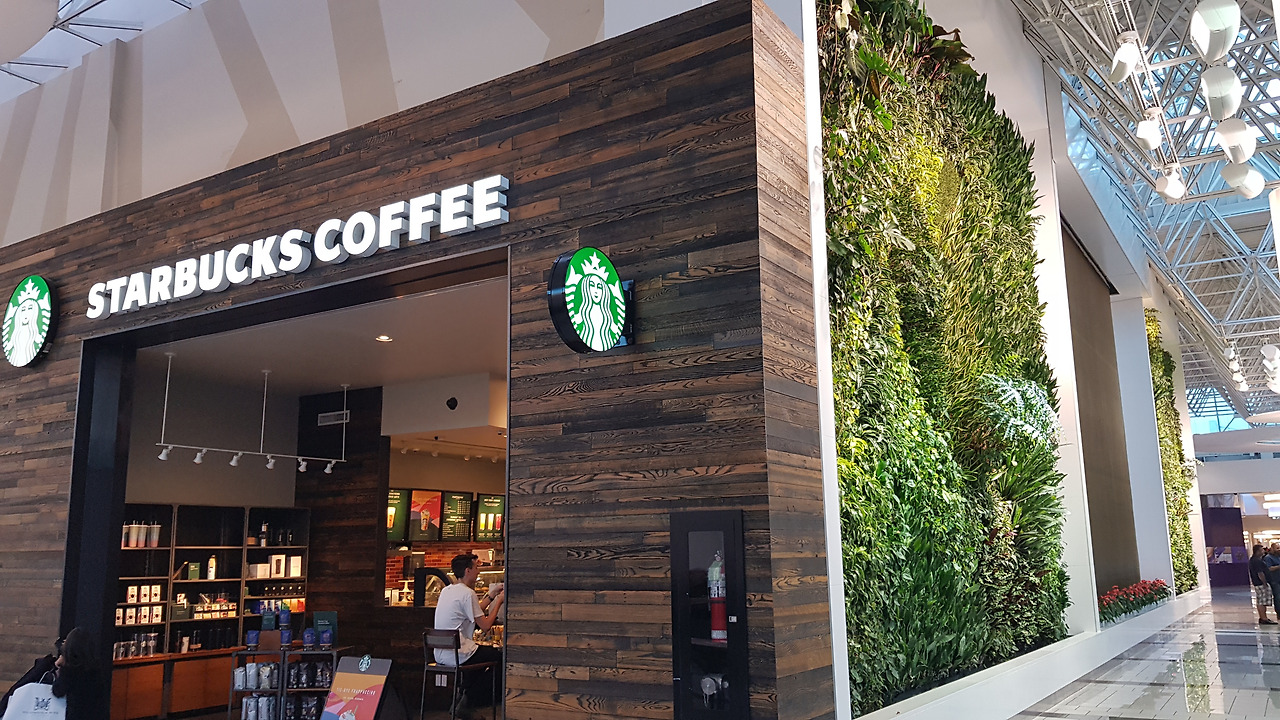 매장 옆 식물 액자는 이곳의 포토존이다Surrey Guildford center 안에 있는 이 스벅 매장은 안보다 이렇게 밖에 앉아 사람 구경하는 재미가 쏠쏠한 곳이다