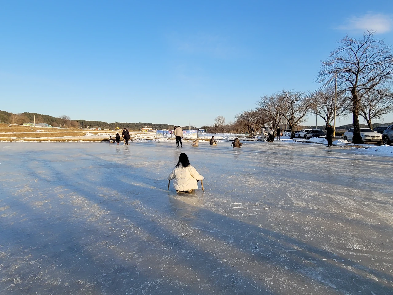 그곳에 희미한 기억 속에 자리 잡고 있던 앉은뱅이 썰매장이 있었다. 나이를 먹은 건가. 어릴 때 기억을 소환할 수 있는 것이 나타나면 무조건 응답해야 할 것 같은 기분이 드는 건. 5학년 딸아이는 처음에는 철기 시대 유물을 보듯 하더니 직접 승차해보고 난 후 승차감은 별로지만 속도감은 최고라며 얼음 바닥을 수없이 돌았다. 등 떠밀려 출발한 새해 첫 여행이 준 선물은 최고였다.