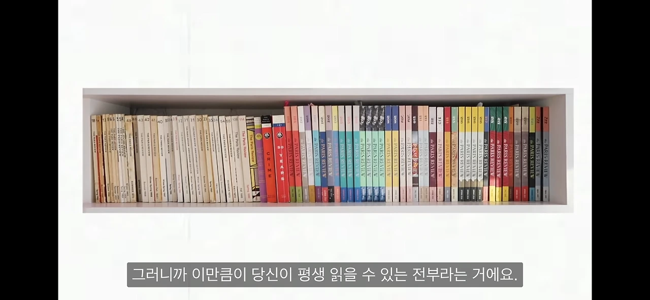 1. 보통 책을 몇 권정도 읽느냐는 질문에 대부분의 사람들은 ‘1년에 한 권 읽는다’라고 대답한다. 그런데 1년에 책 1권을 읽으면 우리는 1년 동안 책장의 한 줄에 꽂힌 책만 읽고 죽을 수도 있다. 그리고 책으로 가득해야 할 책장에 sns, 유튜브 콘텐츠들이 책을 대신하고 있을 것이다. 만약 내 나이 수명이 80세라면 앞으로 평생 읽을 수 있는 책이 46권뿐이라면 몹시 억울할 것 같다. 그것조차 읽지 않아 내가 읽은 책장 속의 반절이 sns, 유튜브 콘텐츠라면 상상도 하고 싶지 않다.