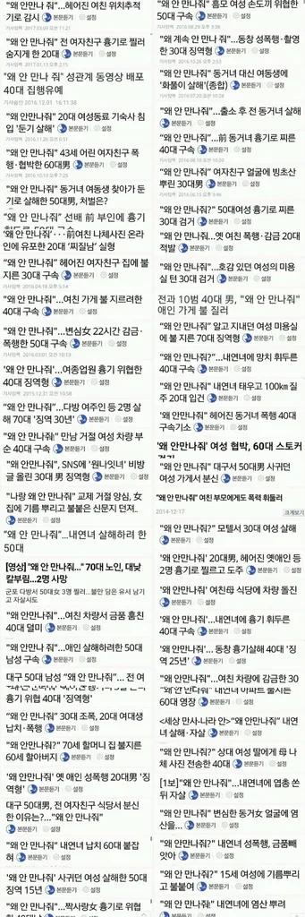 그리고, 이는 최신에서도 크게 다르지 않다. 방금, 네이버에 '왜 안 만나줘'를 검색한 결과다.