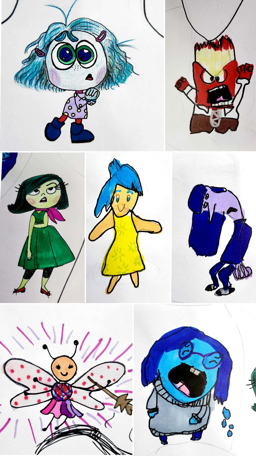 Life Size Figure를 그리고 인사이드 아웃 2 캐릭터를 그리는 조카와 나