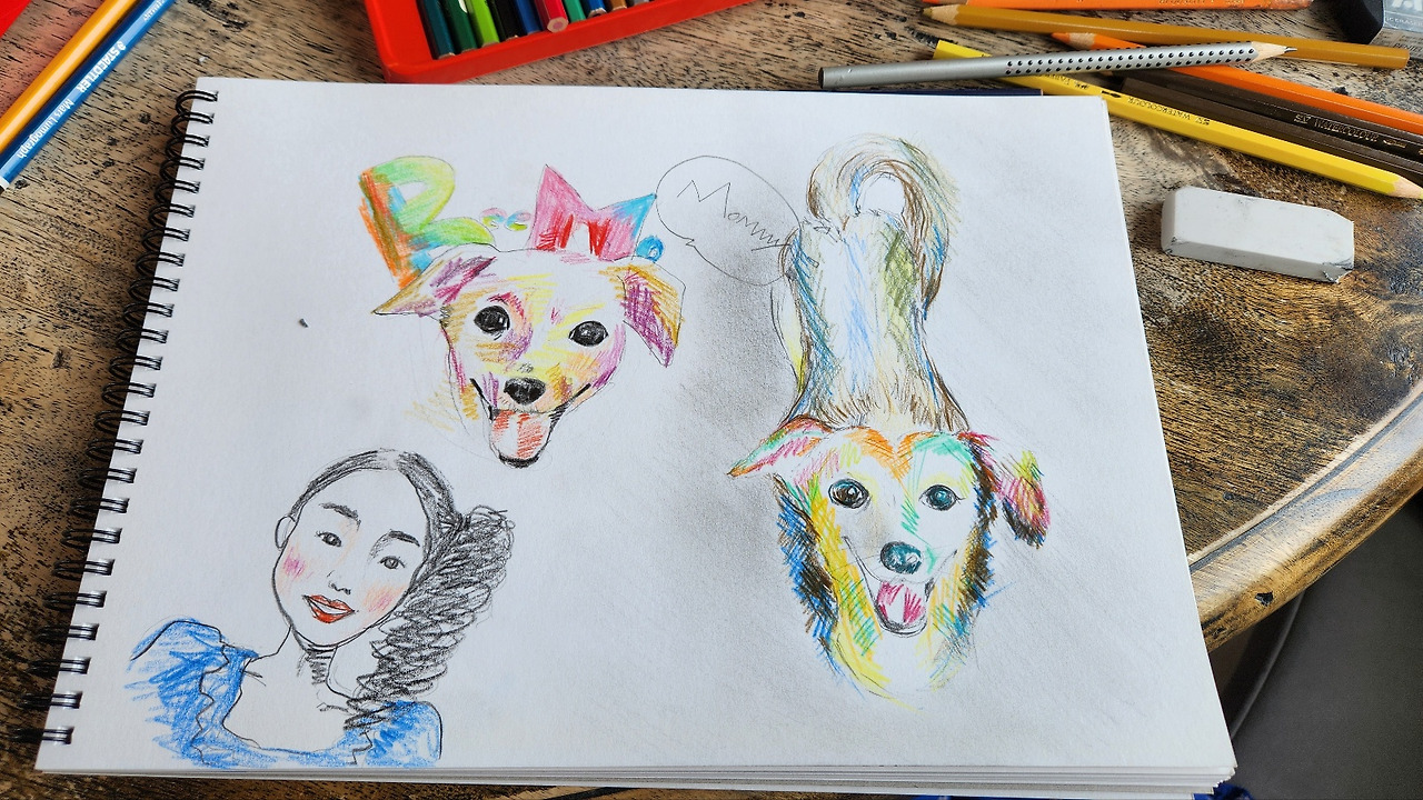 그동안 그림을 못 그린, 어린 나 자신에게 속죄하듯, 가는 곳마다 스케치북을 들고 다녔다. 기차 안에서도, 조카들과 워터파크를 가서도 그림을 그렸다.