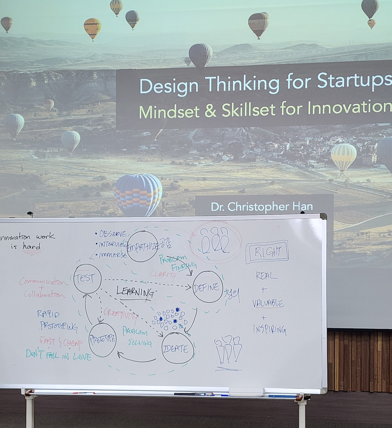 임팩트 MBA 전공은 졸업 요건으로 반드시 창업을 해야 할 만큼, 창업 관련 수업이 많다. 그중 '스타트업을 위한 디자인 싱킹'은 스탠퍼드 d스쿨에서 사용하는 방법을 배울 수 있는 과목이었다. 1 to 1, 1 to many, many to 1, many to many. 비즈니스 관계의 유형에 따라 아이디어를 도출하고 검증하는 실습 위주의 수업으로, 내용도 체계적이었고 학생들의 참여도 활발했다. 아이디어를 빠르게 테스트하는 것이 중요하다고 강조하셨던 교수님 말씀은 지금까지도 생생하다.