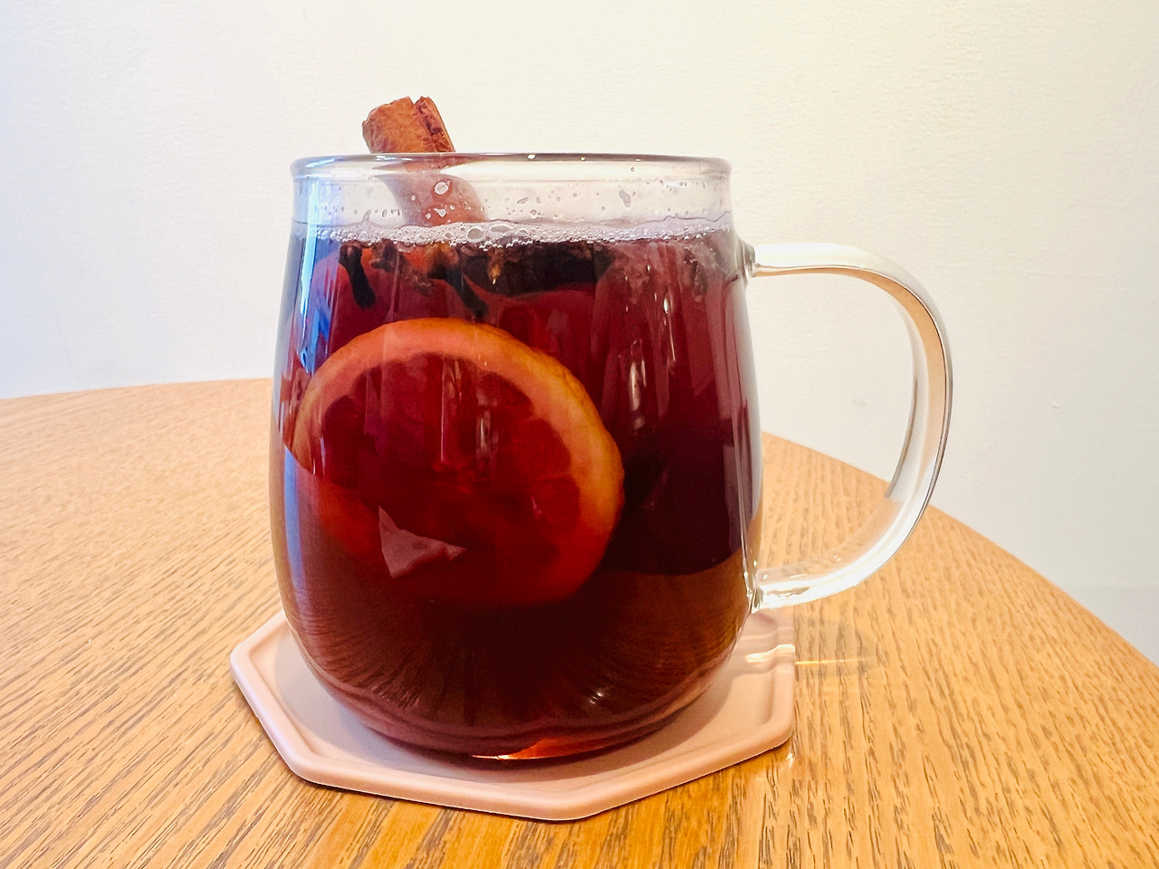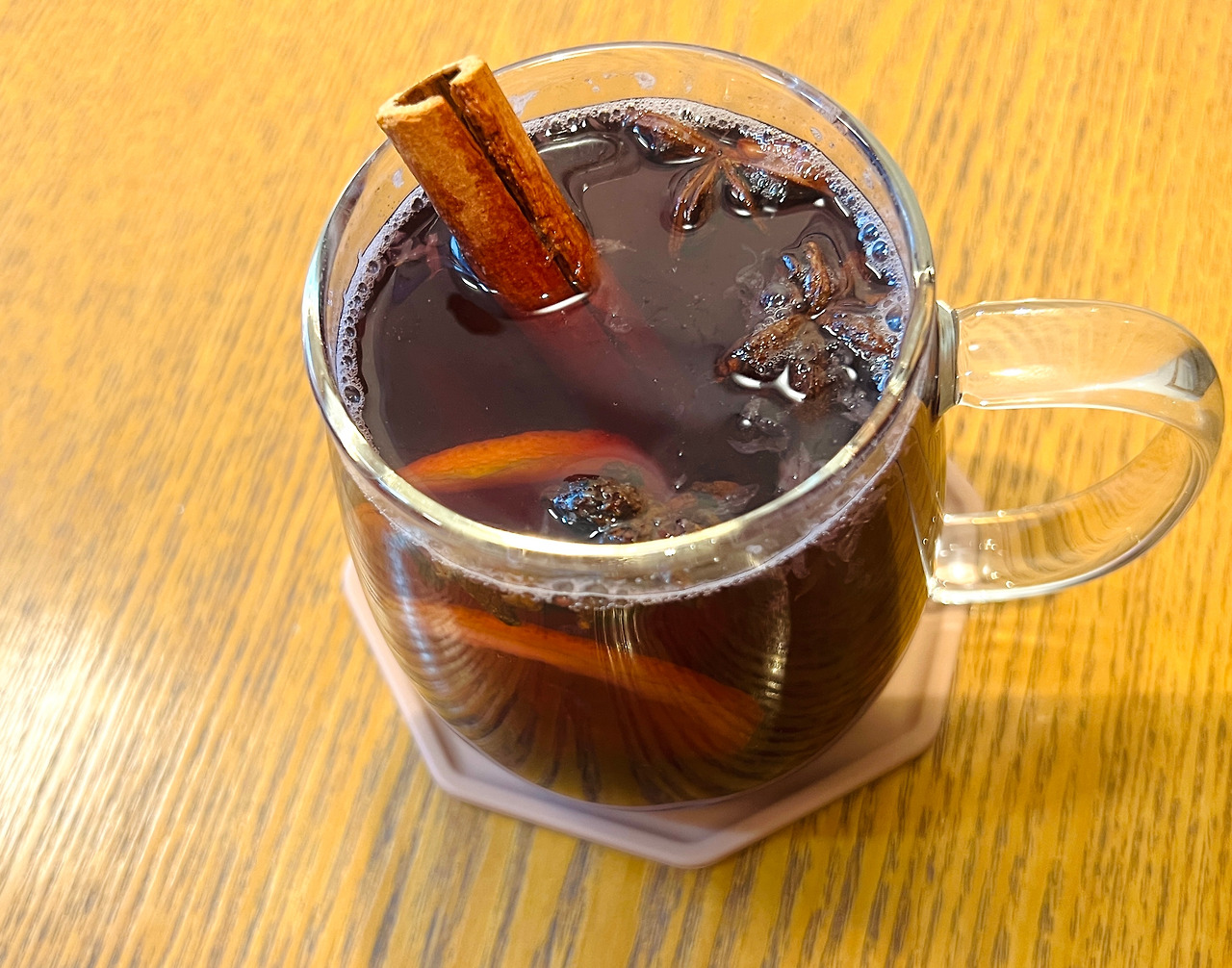 자주 찾는 동네 카페에서 종종 마시는 뱅쇼는 레드와인 특유의 떫은맛과 시나몬 스틱의 영향으로 우리네 수정과맛이 믹스된 오묘함과 레몬의 상큼함이 은은하게 다가온다.