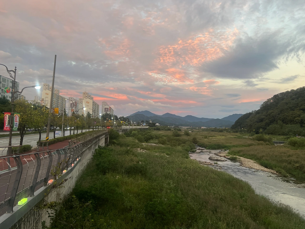9월의 날씨라고는 믿기지 않을 만큼 뜨겁다. 최고기온이 35도를 가리킨다. 이 더위에도 달리고 싶은 욕구는 가득한데 차마 엄두가 나지 않는다. 아침 일찍부터 일어나 바쁜 하루를 보낸 탓인지 잠시 잠이 들었다. 한 시간 남짓 단잠을 자고 일어났다. 시간은 어느덧 6시를 향해간다. 피로감도 덜하고 무작정 달리기 시작했다. 어느덧 해가 지기 시작하고 기온은 조금 떨어져 못 견딜 만큼의 더위는 아니었다. 나오길 잘했다는 마음이 들었다. 평소보다 발걸음도 가볍게 느껴진다. 주변 풍경마저 반겨주듯 아름다운 노을빛과 한편에 해바라기가 보이며 힘내라고 힘을 불어넣어 주는 듯했다. 즐겁게 달리다 보니 반환점에 다다랐다. 호흡을 가다듬고 물을 마시며 천천히 걷다가 주변 풍경이 좋아서 다리 사이 반영샷도 담아본다. 다시 달리기 시작한다. 항상 무더위 속에 달리다가 시간만 조금 늦췄을 뿐인데 달리는 맛이 난다. 평소보다 즐겁게 레이스를 마치며 운동을 마무리했다. 한동안 꽉 막힌 도로처럼 정체되어 있던 마음이 조금은 풀리는 기분이 들었다. 불현듯 이런 말을 되뇌고 있는 나를 발견한다. “좌절금지, 어떤 어려움에도 좌절하지 말자 “ 굵은 땀방울이 흘러내린다. 어쩌면 땀 흘리는 이 재미 때문에 계속해서 운동을 쉬지 않는지도 모르겠다. 날씨 예보를 보니 이 더위도 조만간 꺾일 듯 보인다.