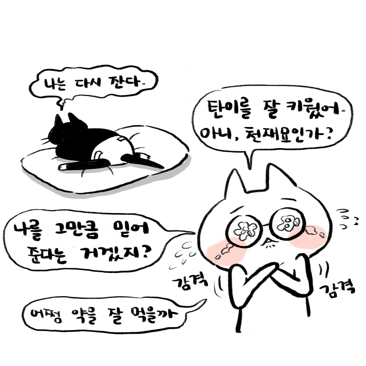 예상외로 너무 약을 잘 받아먹는 연탄이를 보며 다행이라는 생각이 들기도 하고 한편으로는 나와 연탄이의 유대감이 대단하다는 묘뽕에 취해 있기도 했다.