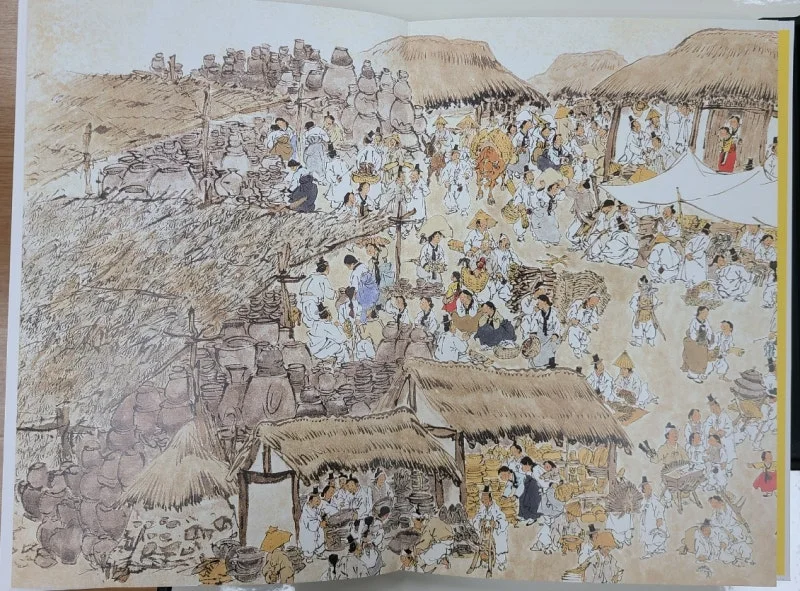 오래전 선바위미술관에서 이서지의 "장터"라는 작품을 본 일이 있다. 10미터 정도는 될 듯한 넓고 긴 화폭에 조선시대 시장풍경을 아주 세세하게 담은 작품이다. 두 시간도 넘게 ‘장터’ 한 작품만 감상하고 있었다. 옛날 장터의 모습을 구석구석 자세히 보고, 작품 속 사람들 한 명 한 명의 모습들을 보며 생각에 잠겼다. 몇 백 년 전 조선시대의 장터에서 내가 있었다면 어떤 모습이었을까? 어떤 일을 하고 있었을까? 또 어떤 생각을 하며 살고 있었을까? 물건을 팔러 장에 갔을까? 팔러 온 물건을 사서 다른 사람에게 넘겨파는 상인이었을까? 막걸리 한 잔 하는 주막의 주인이었을까? 대장간에서 칼 호미 등을 만드는 대장장이였을까?