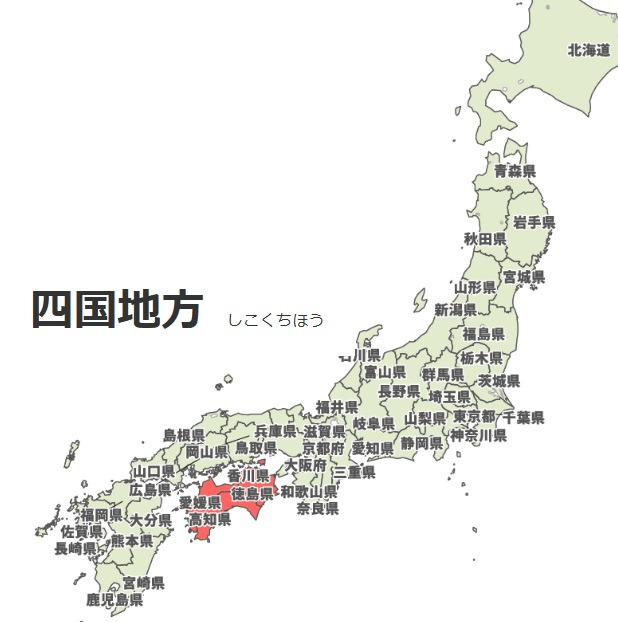 규슈(九州)가 아홉 개의 나라가 있었다고 해서 이름이 그렇게 지어진 것처럼 시코쿠(四国) 역시 4개의 나라가 있었다고 해서 지어진 이름입니다. 이 4개의 나라는 이요, 사누키, 토사, 아와라는 지역인데 현재의 이름으로 바꾸면 에히메, 카가와, 고치, 도쿠시마가 됩니다. 이 중에서 가장 태평양 쪽으로 위치한 고치만 사케가 발달하고 나머지는 현재 사케는 그렇게 발달하지 않은 편입니다.