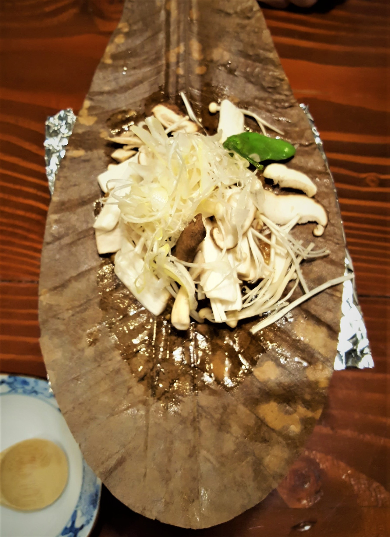 호바미소(朴葉味噌) - 후박나무 잎을 깔고 된장을 바른 후 숯불에 구워 먹는 구이