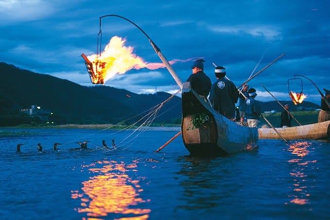 키소산센(木曾三川)중 하나인 나가라가와(長良川)의 우카이(鵜飼い) - 아메바 인용