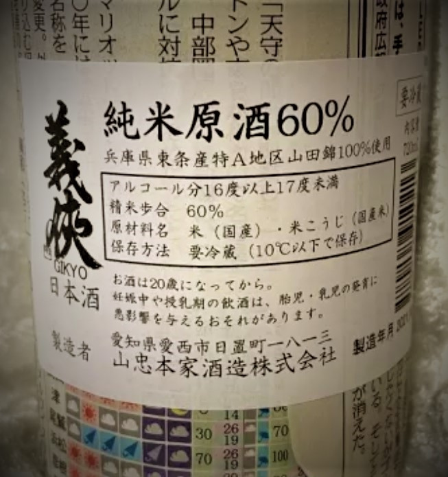 기쿄(義侠)는 아직도 신문지를 포장지로 해서 출하하는 술이 있는데, 이는 아직 유통에 냉장차 등이 없는 시대에 어떻게든 품질 저하를 막기 위해 고안한 것으로 지금도 이 스타일을 바꾸지 않고 있다.