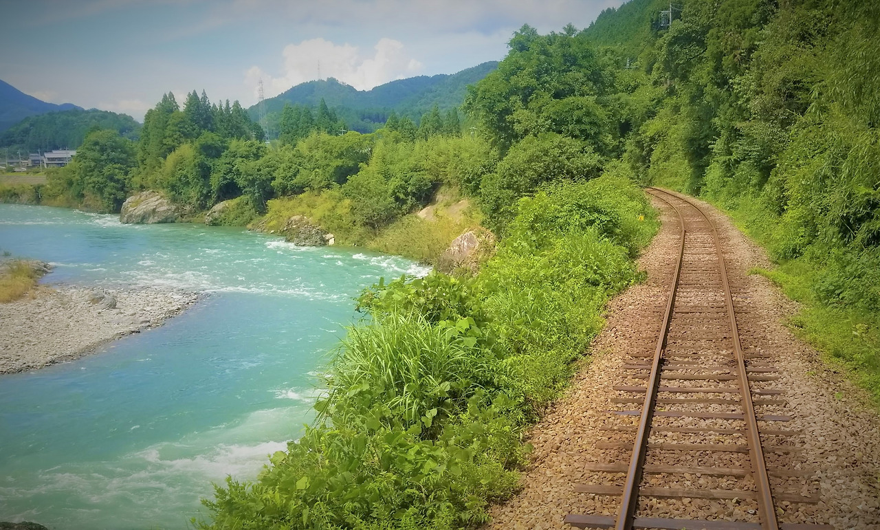 나가라가와(長良川)를 달리는 나가라가와 철도(長良川鉄道)