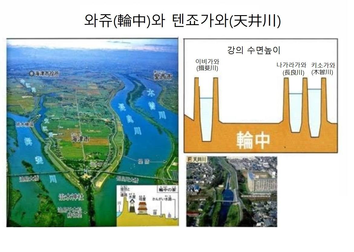 와쥬(輪中)와 텐죠가와(天井川) - 아메바 인용