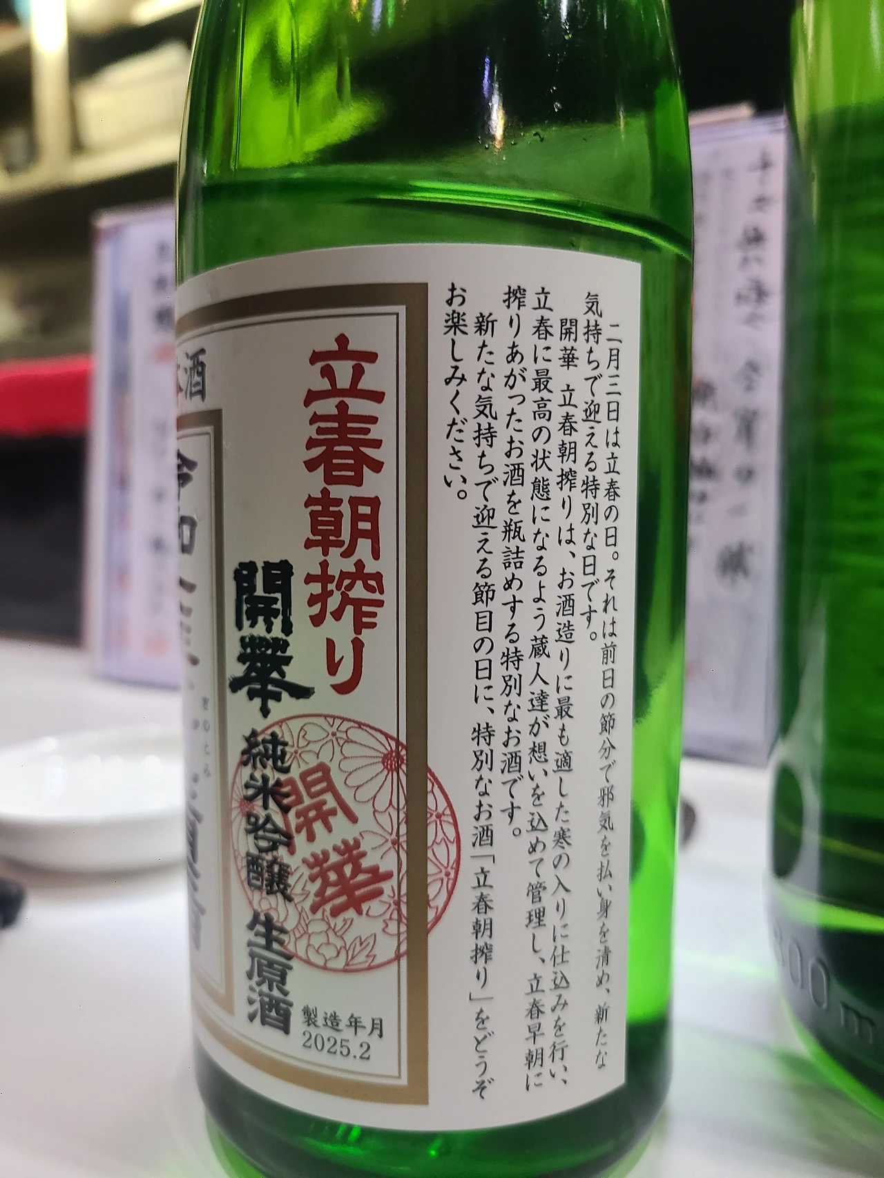 * 2월 3일 입춘을 맞이하여 전날 세츠분 밤부터 짜기 시작해 입춘 아침에 출하하는 액운을 물리친 상서로운 사케