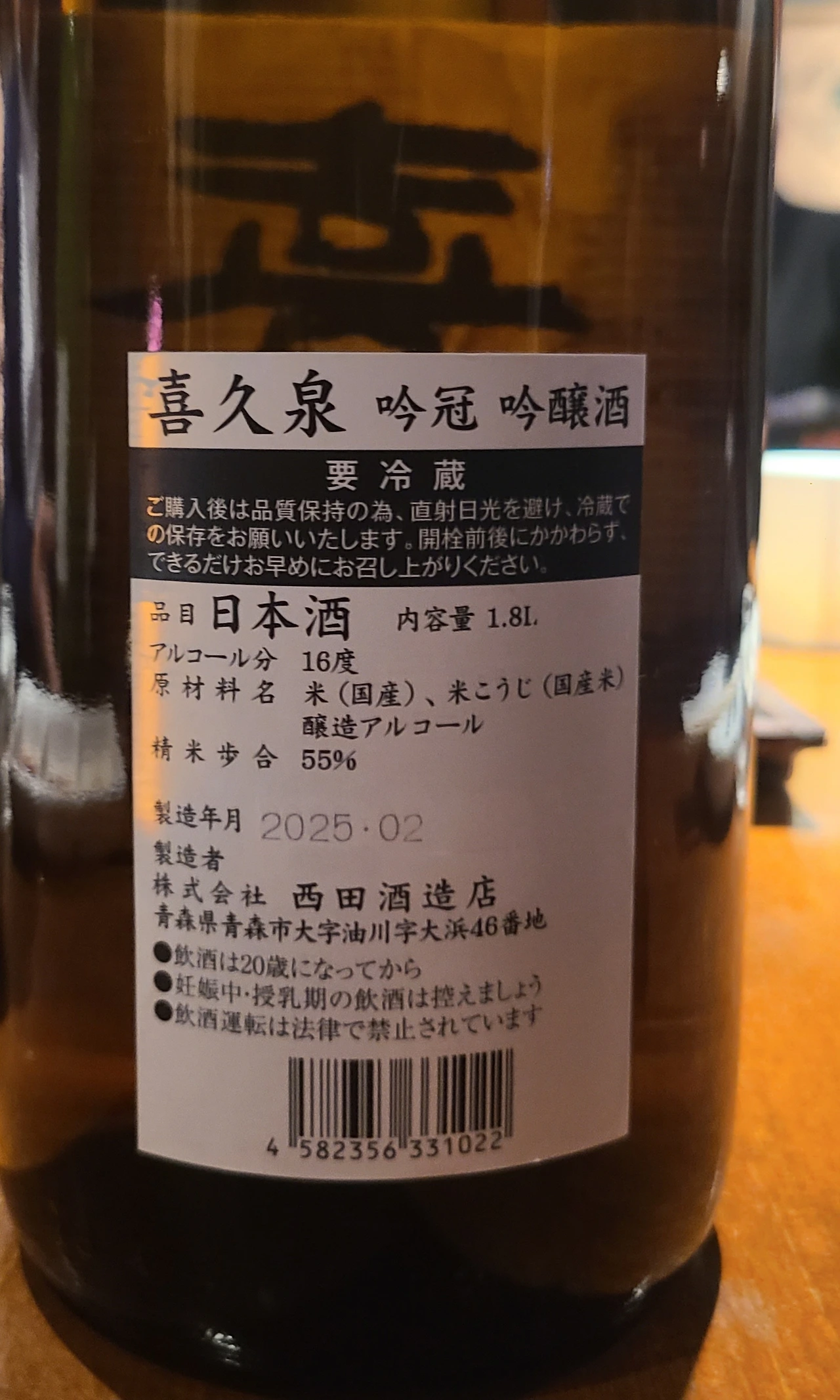 * 덴슈는 양조알코올을 넣지 않고 쌀로만 술을 빚는 쥰마이슈인데 반해 키쿠이즈미는 양조알코올을 배합