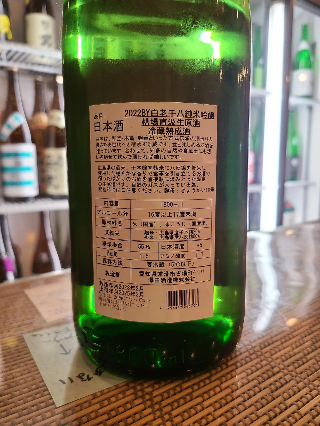 * 술 수조에서 바로 병입한 후나바지카쿠미