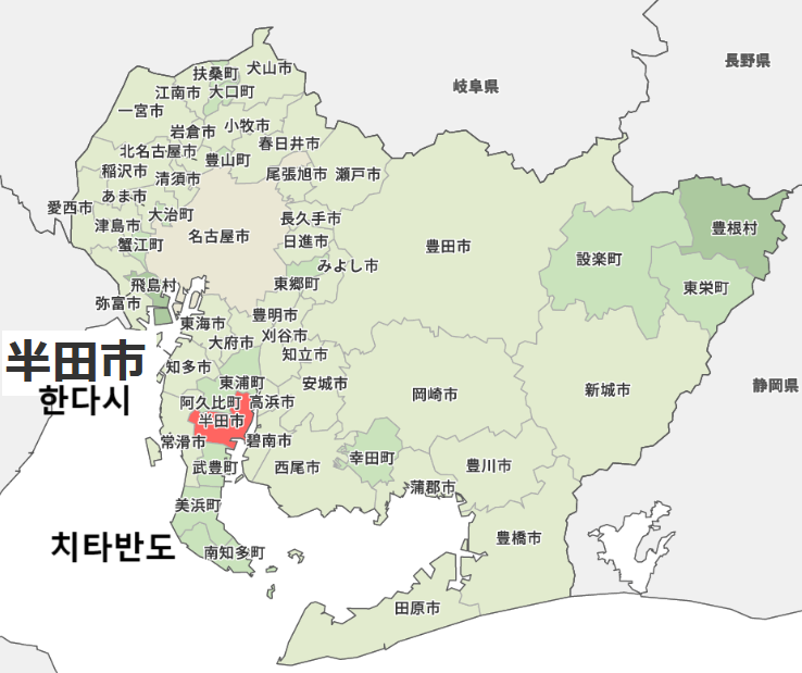 대표적인 지역으로는 아오모리현의 츠가루 지역과 남부 지역, 기후현의 히다 지역과 미노 지역, 아이치현의 오와리 지역과 미카와 지역 등이 대표적입니다. 금번은 아이치현 오와리 지역의 사케를 소개해드리고자 합니다. 오와리 지역은 나고야를 중심으로 발전해 왔습니다. 나고야 남쪽의 츄부 국제공항이 있는 반도의 이름이 치타(知多)인데, 위스키의 이름으로도 많이 알려져 있습니다.