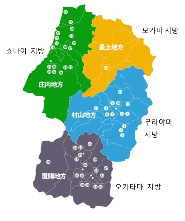 전국신주감평회에서 금상 수상 양조장을 가장 많이 배출한 곳으로 9년 연속 후쿠시마가 차지했으나, 2022년에 10년 연속 수상을 막은 곳이 바로 야마가타현입니다. 그만큼 명주가 많고 주질이 뛰어난 곳입니다. 그래서 금번 죠키겐은 우선순위에서 밀릴 수밖에 없었으나 의외로 야마가타현은 생각보다 넓고 지역구분이 명확합니다.