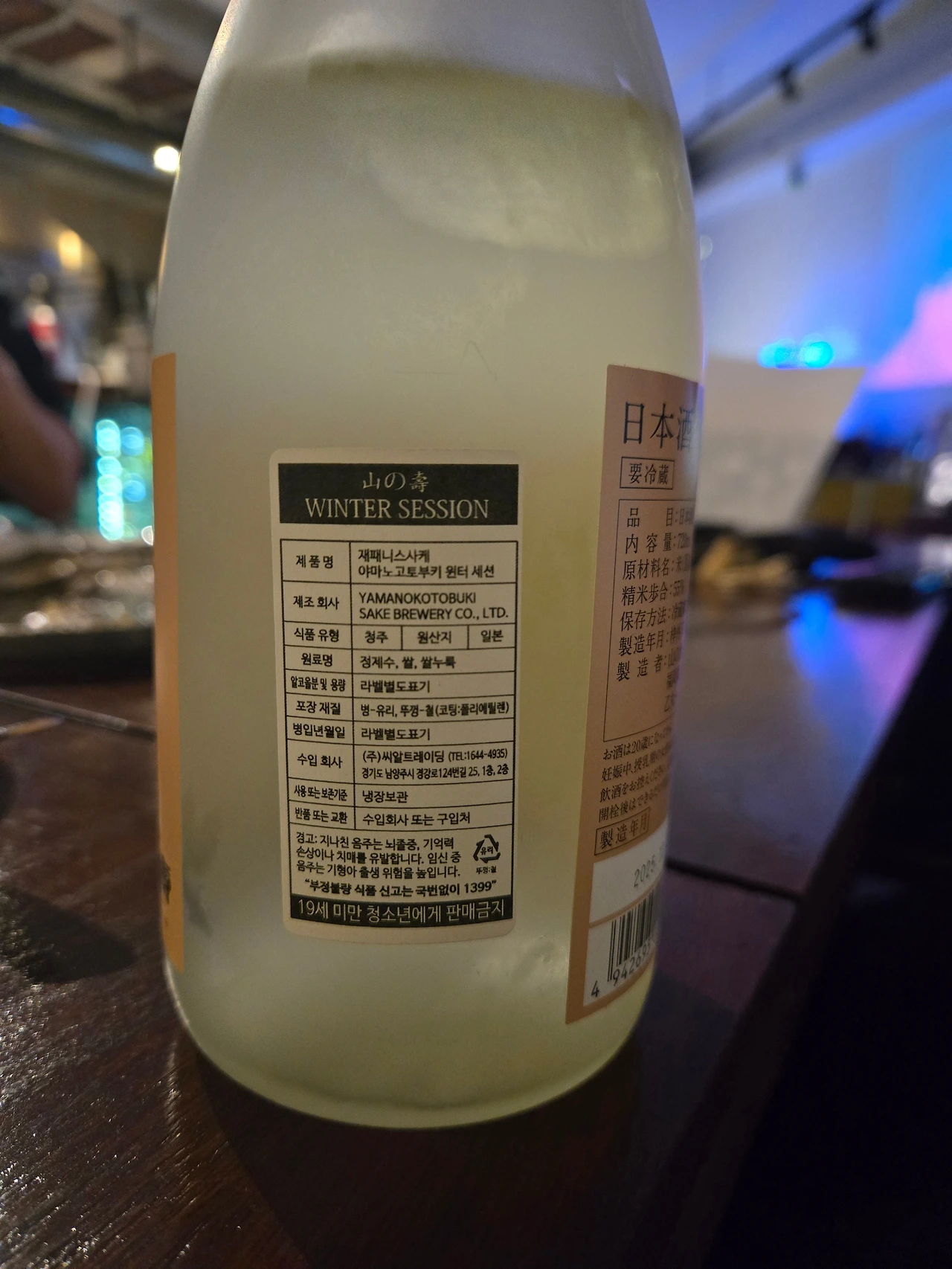 * 딸기 연유와 백도와 같은 향이 특징이며 겨울한정판 답게 다소 앙금을 남긴 탁한 빛의 사케