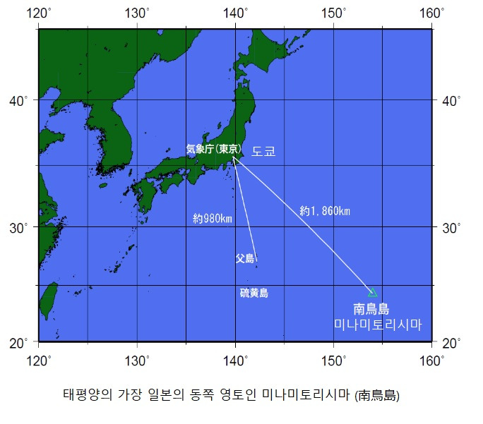 그래서 일본의 가장 동쪽의 영토에 해당하는 '미나미토리시마'도 무려 본토의 도쿄에서 1,860킬로나 떨어져 있습니다. 이는 퀴즈 프로그램 등에서 '일본에서 가장 먼저 해가 떠오르는 행정구역이 어디냐'는 문제의 단골 소재가 됩니다. 정답은 당연히 도쿄입니다.