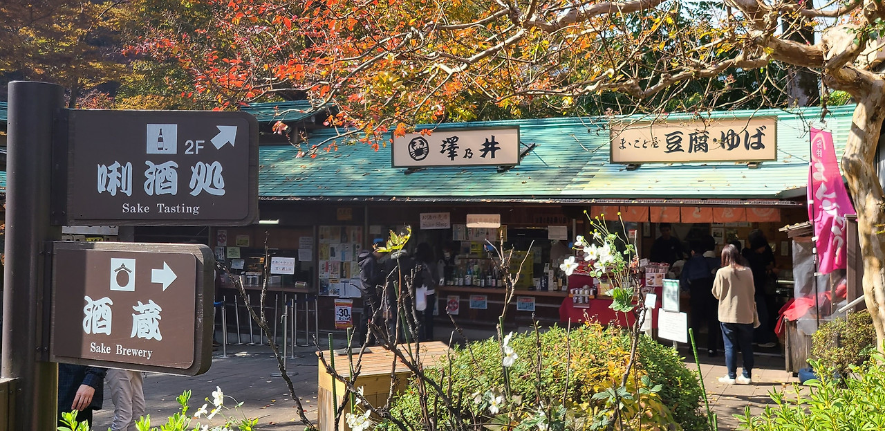 양조장 앞의 시음과 간식을 먹을 수 있는 사와노이엔 (澤乃井園)