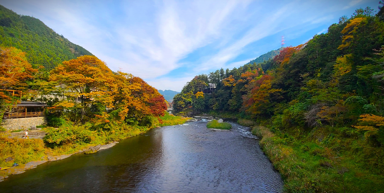 양조장 바로 앞의 타마가와(多摩川)를 끼고 있는 미타케 계곡 (御岳渓谷)