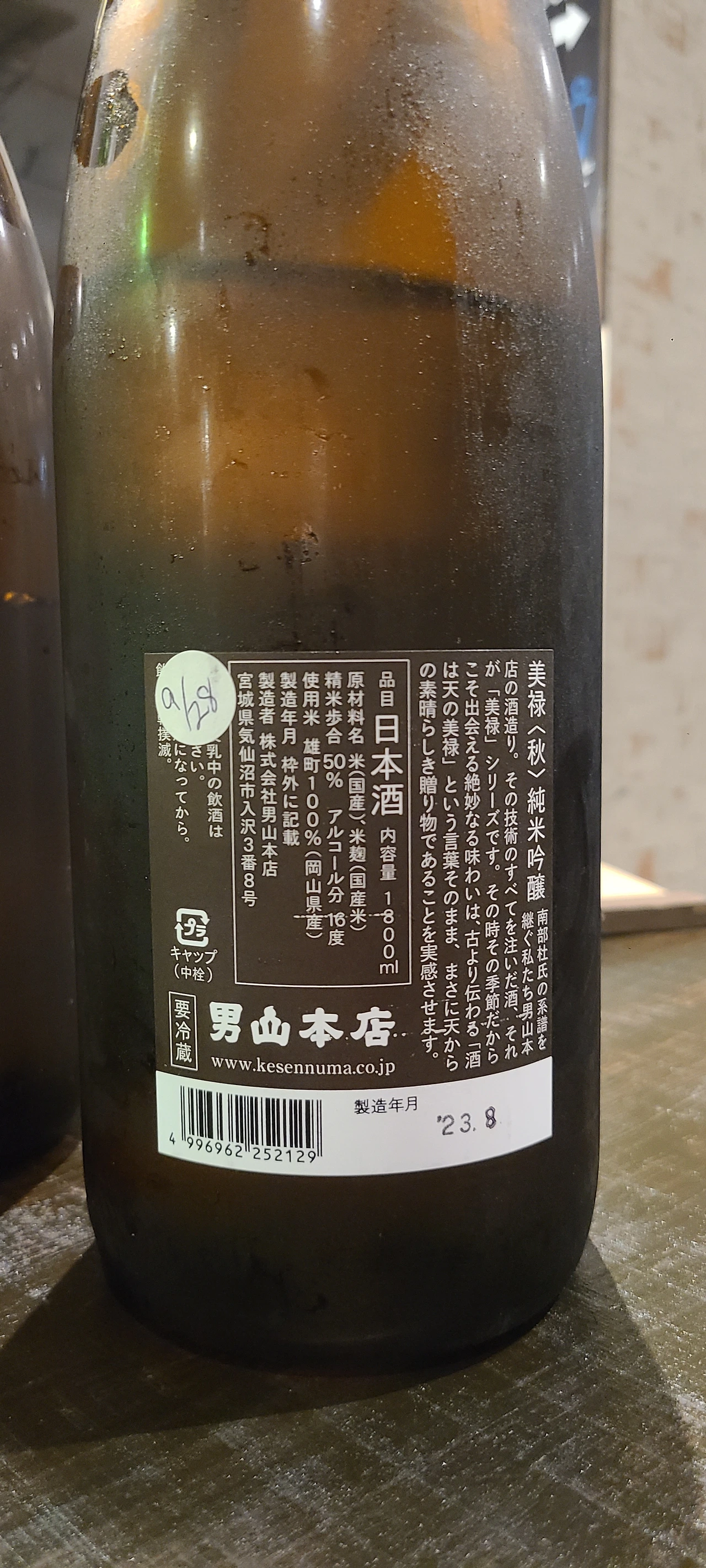 * 홋카이도 오토코야마(男山)와는 다른 미야기현 오토코야마 본점의 사케