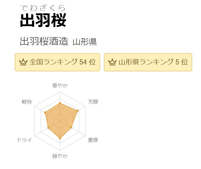 그리고 편의점에서 자주 눈에 띄는 이 술이 야마가타 현내 랭킹 5위에 전국랭킹으로 무려 54위까지 랭크되어 있다. 뒤집어 말하면 자기 동네에서 5등이 전국 54등을 할 정도이니 얼마나 야마가타현이 사케 격전지구 인지 가늠해 볼 수 있다.