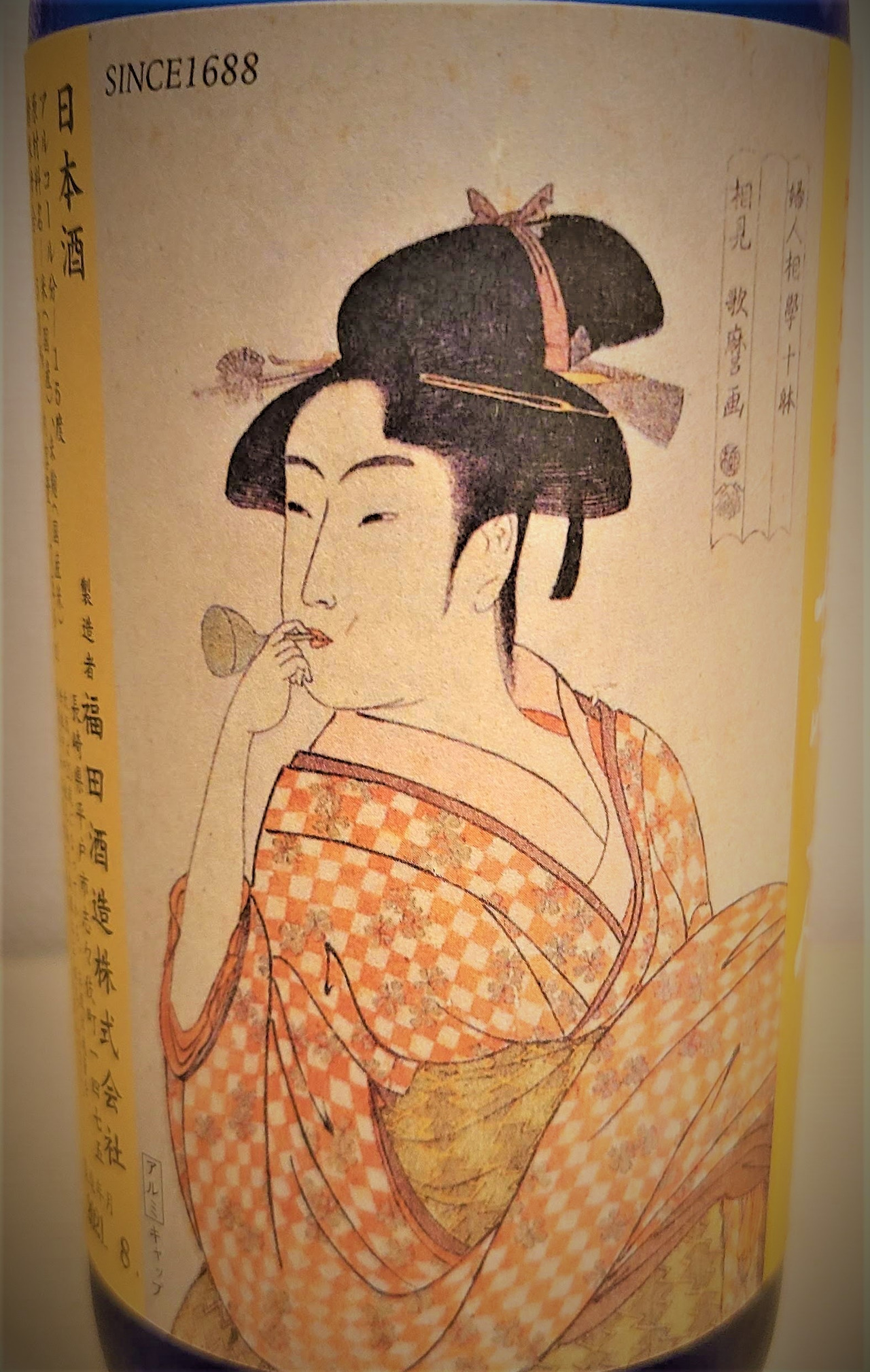라벨에 쓰인 그림은 에도시대의 우키요에 화가(浮世絵師), 키타가와 우타마로(喜多川 歌麿) 가 그린 판화 작품집인 후진소가쿠짓타이(婦人相學十躰) 중 하나인 포핀을 부는 여자(ポッピンを吹く女)이다.