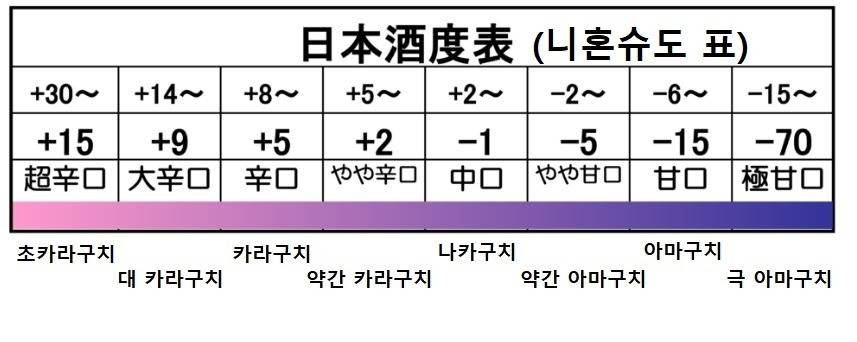 대략적으로 대부분의 사케는 니혼슈도 +20 전후에서 -10 전후 사이에 대부분 위치한다.