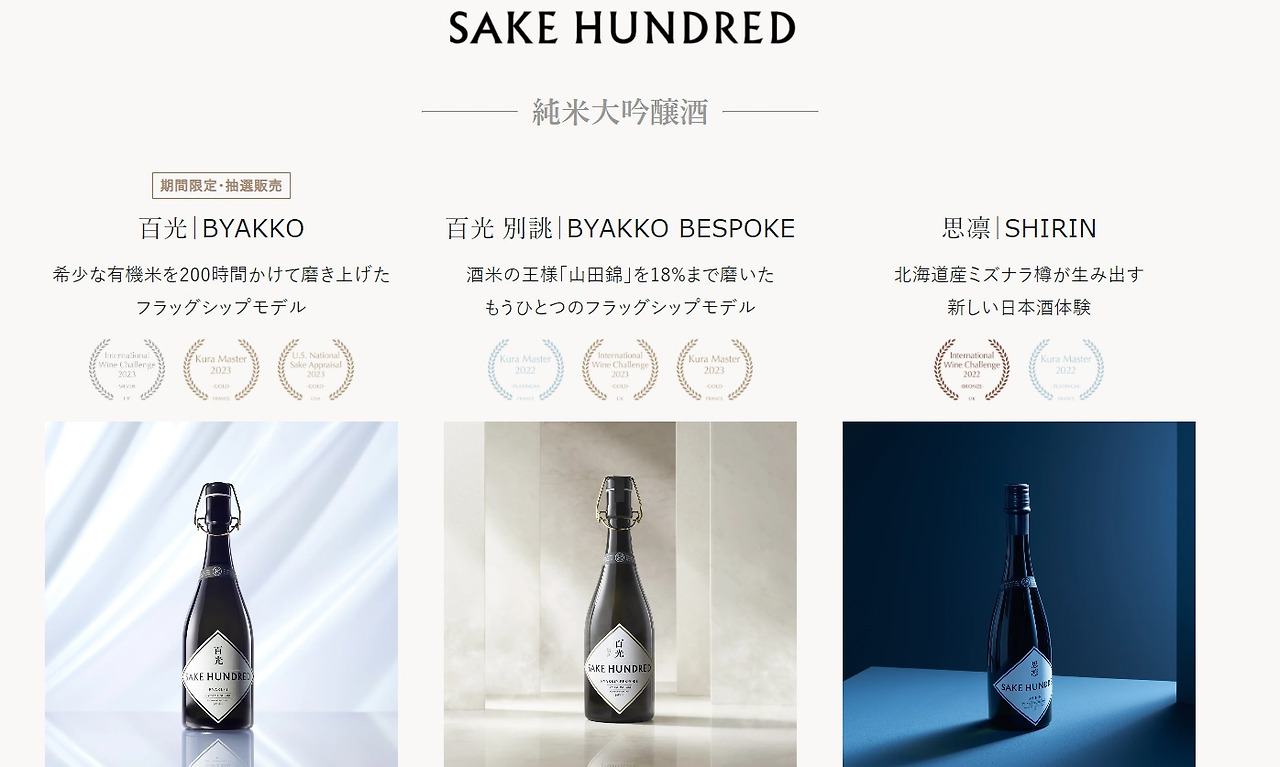 사케 헌드레드는 최고의 글로벌 사케 브랜드를 지향하며 'SAKE HUNDRED'로 리브랜딩 해서 전개하는 기획성 브랜드다.