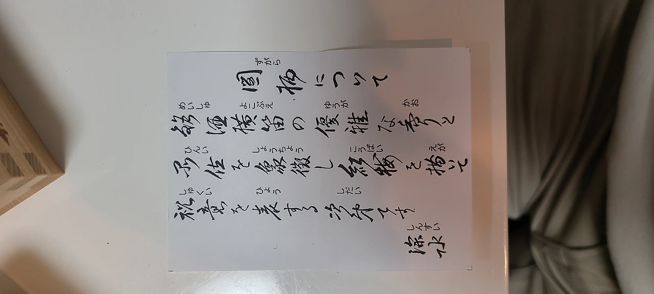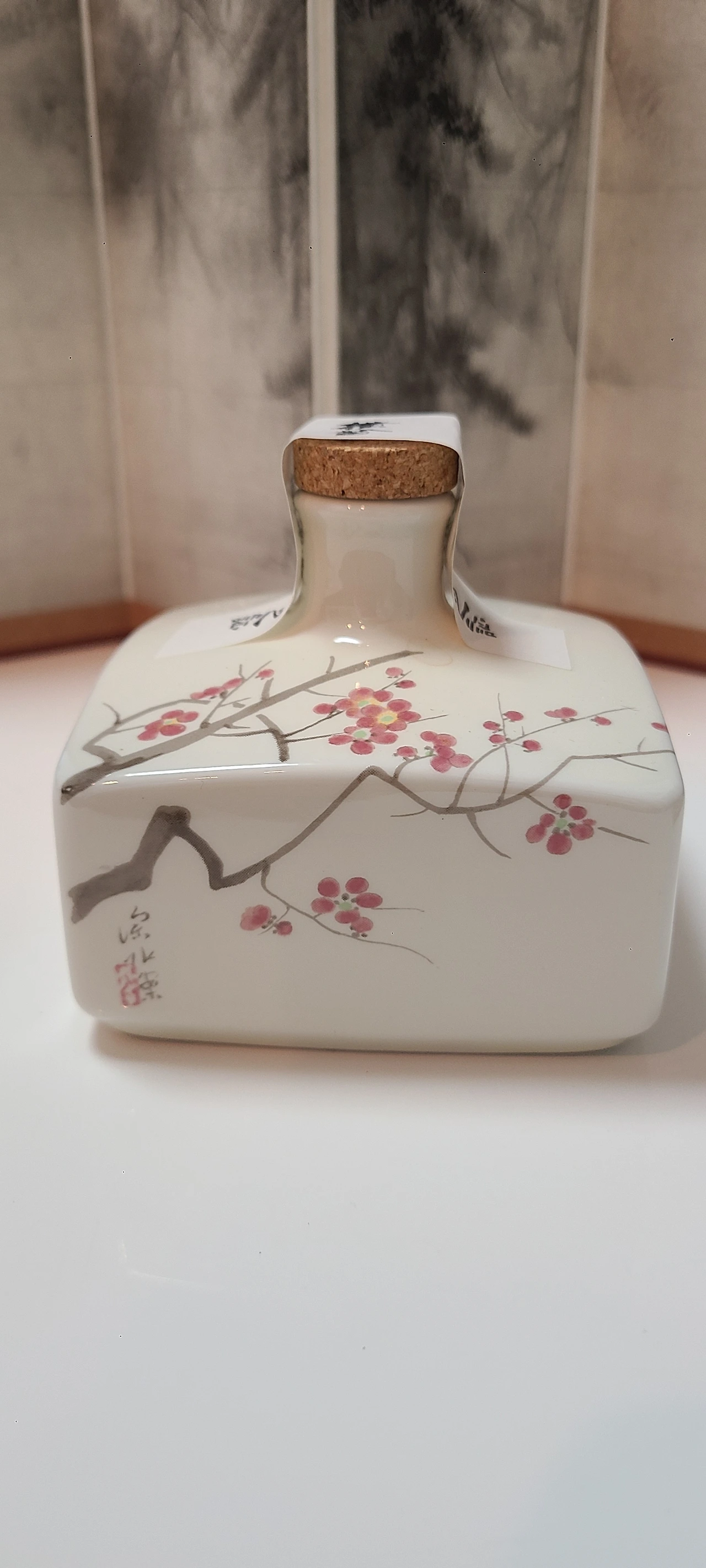 銘酒横笛の優雅な香りと品位を象徴し紅梅を描いて祝意を表する次第です。深水